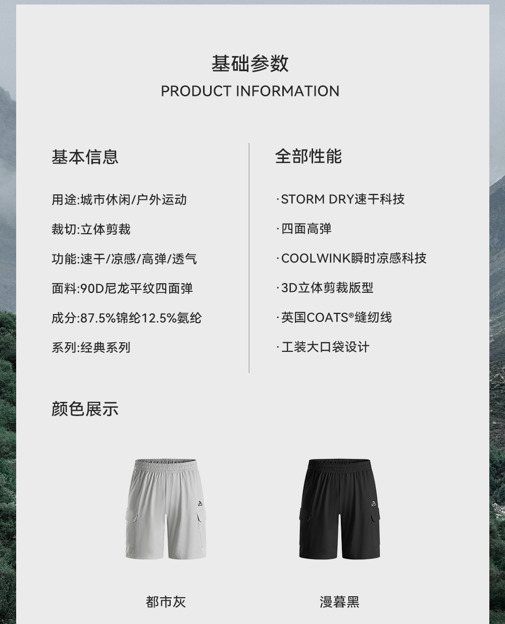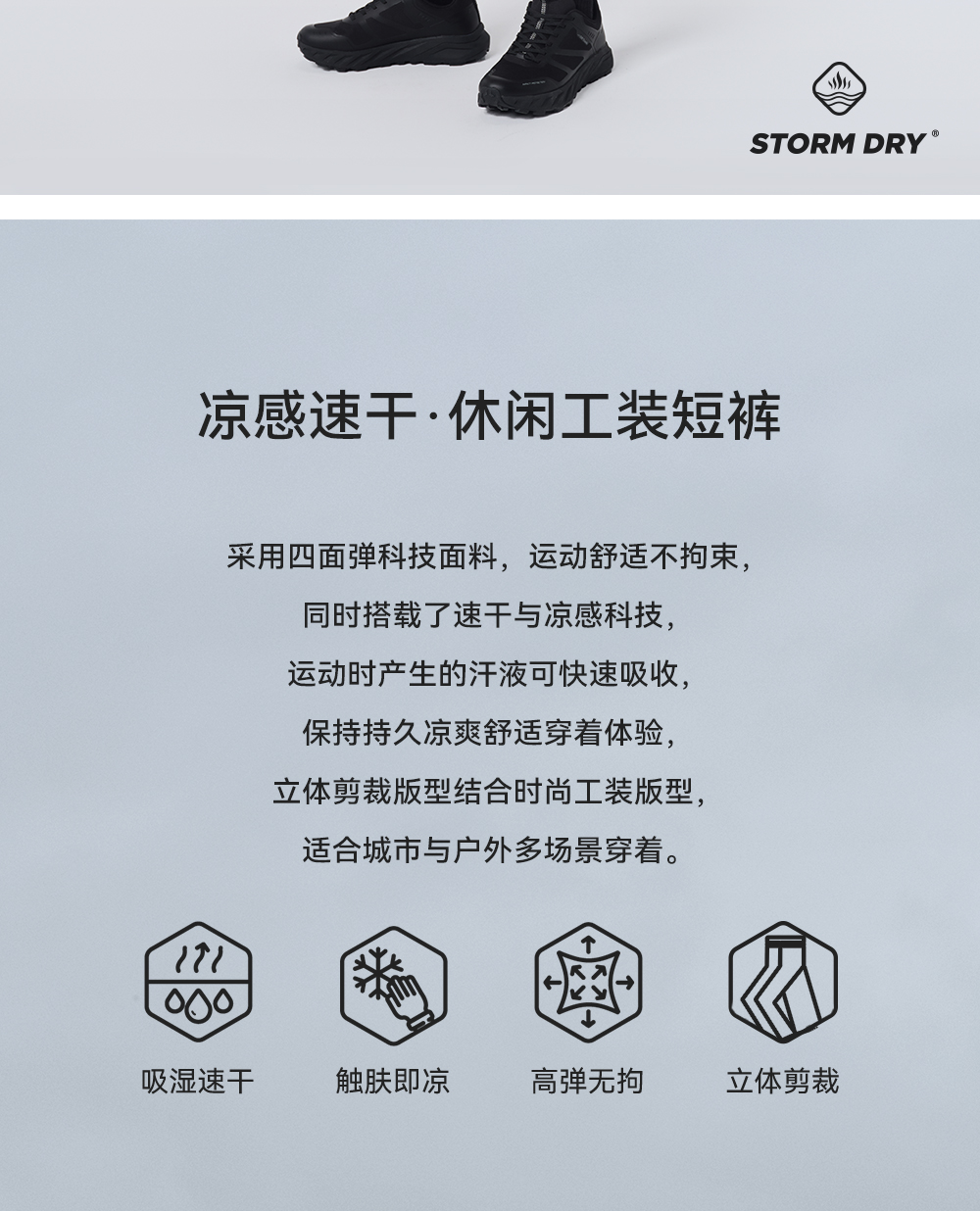 伯希和户外速干裤男25年夏季新款轻量透气休闲短裤高弹舒适工装裤