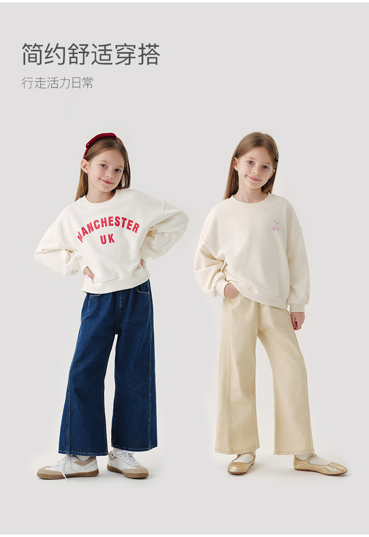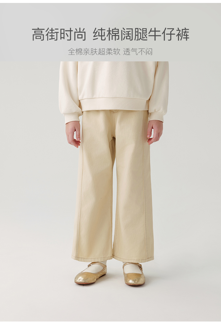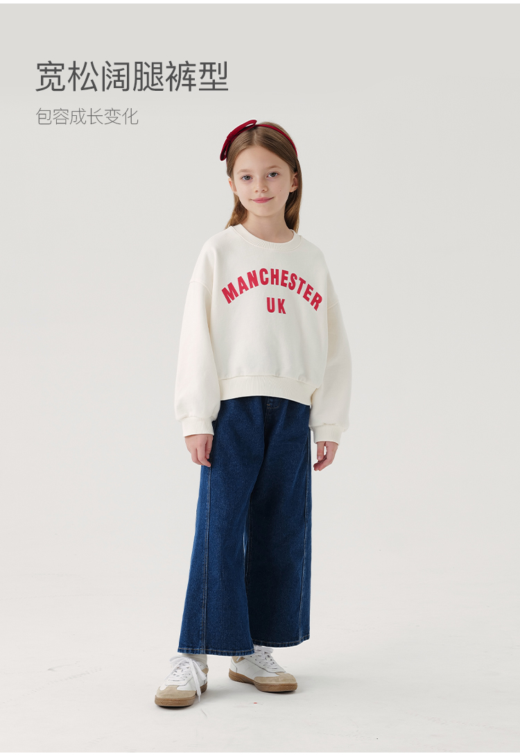 马克珍妮女童时尚微喇牛仔裤儿童阔腿裤纯棉2024年秋装新款241173