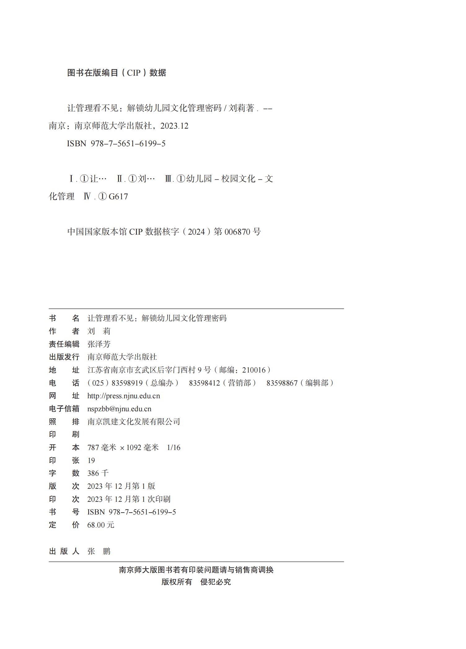 让管理看不见——解锁幼儿园文化管理密码 刘莉 南京师范大学出版社 正版书籍