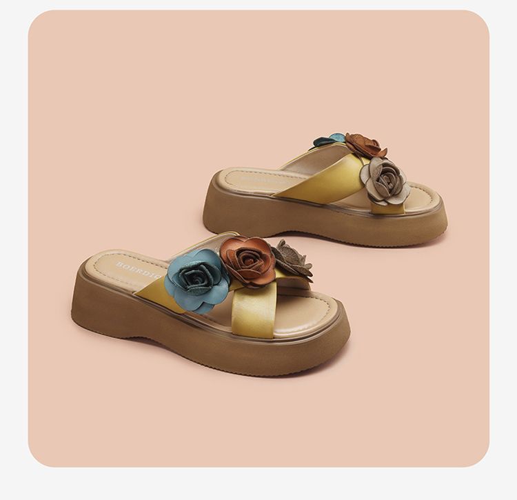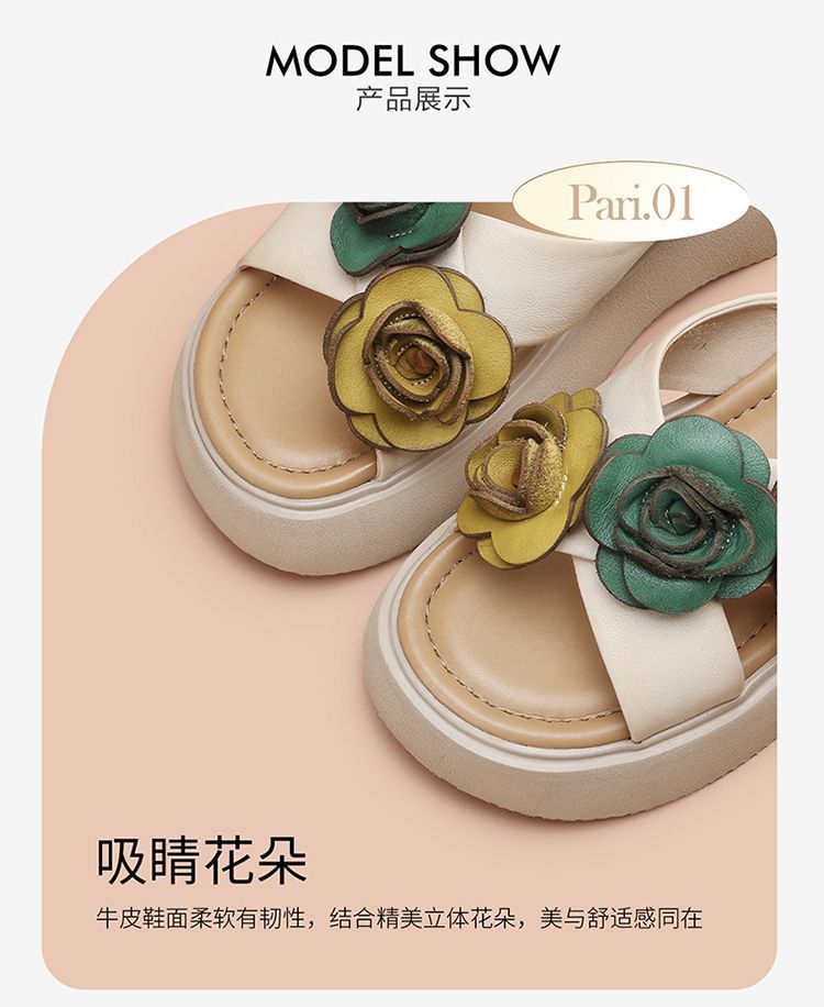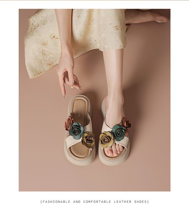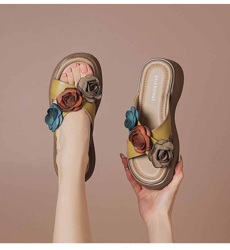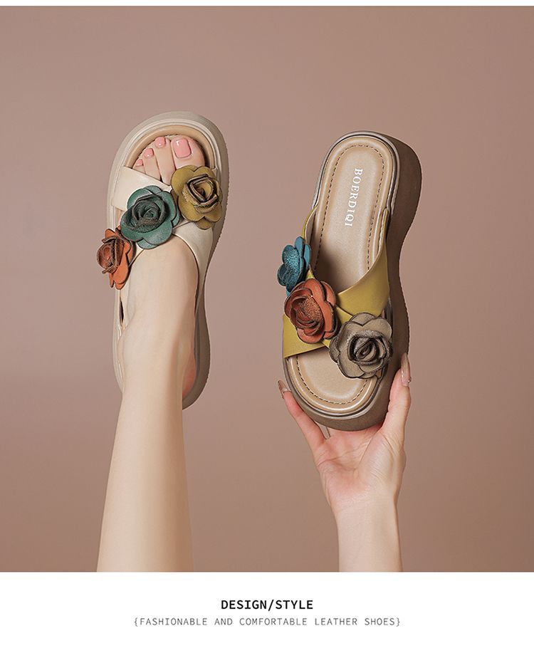 【头层牛皮】厚底手工花朵拖鞋女夏季名族风轻便外穿凉拖-BB