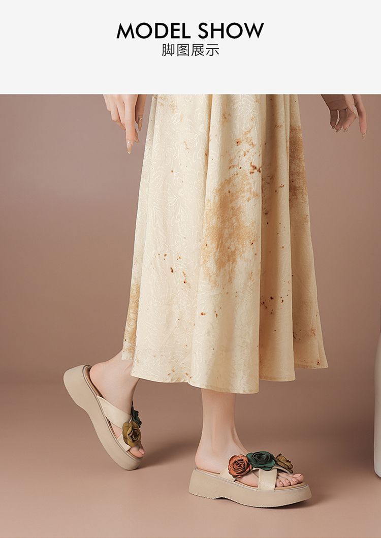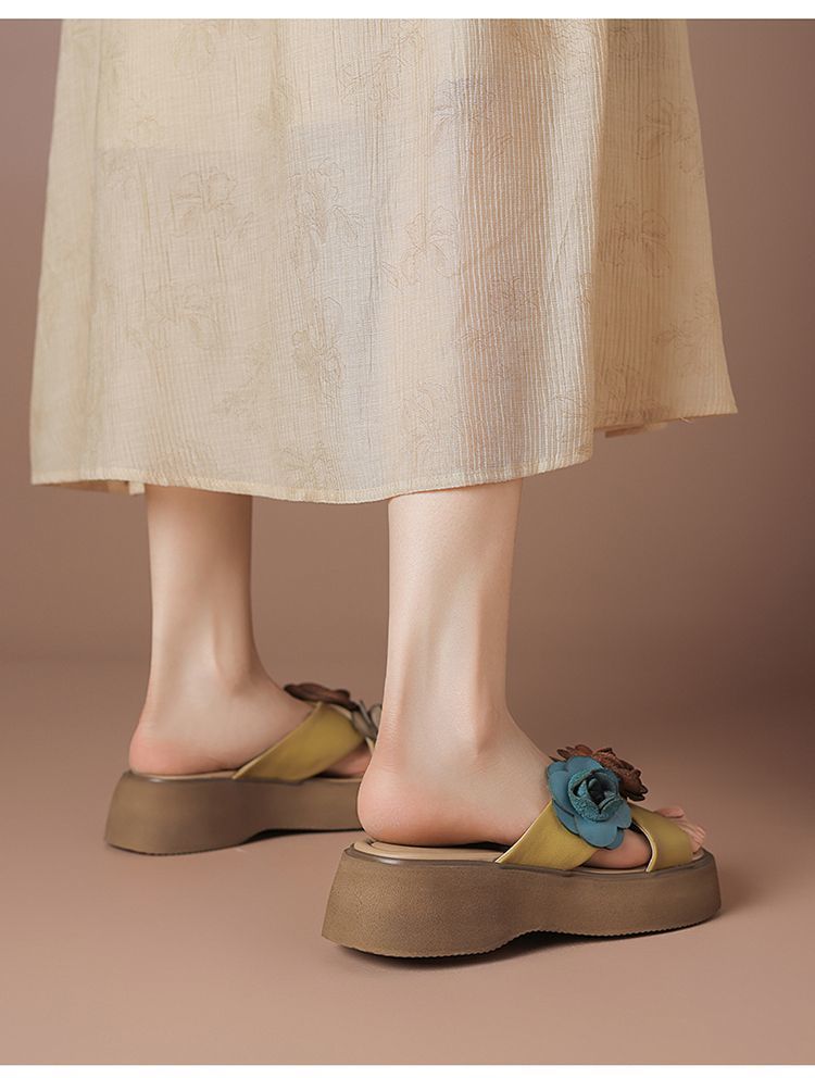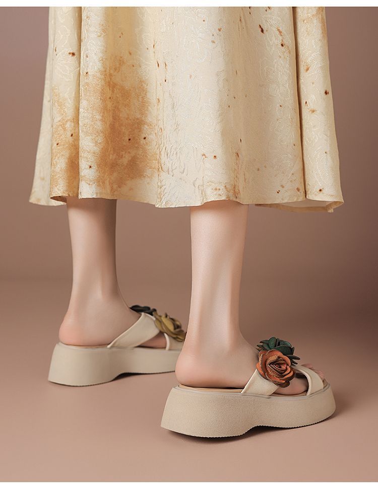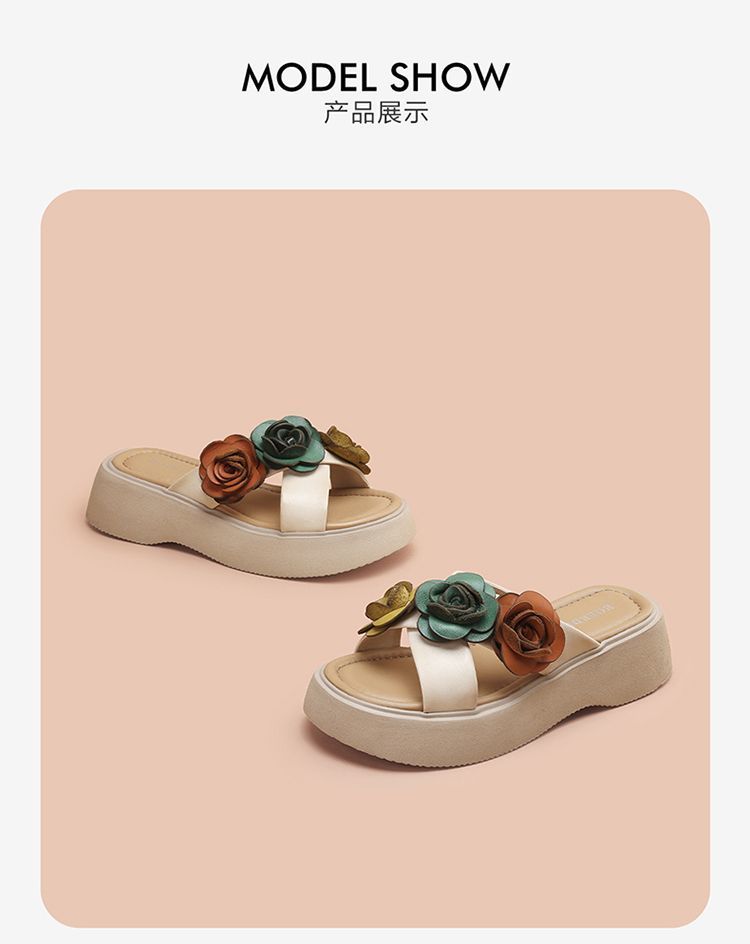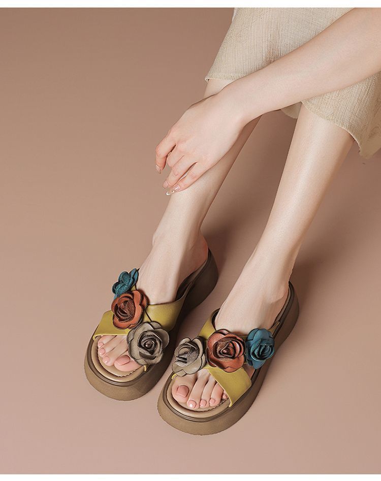 【头层牛皮】厚底手工花朵拖鞋女夏季名族风轻便外穿凉拖-BB