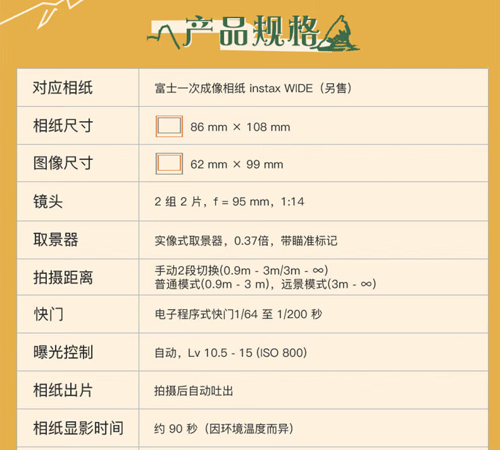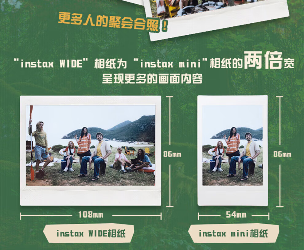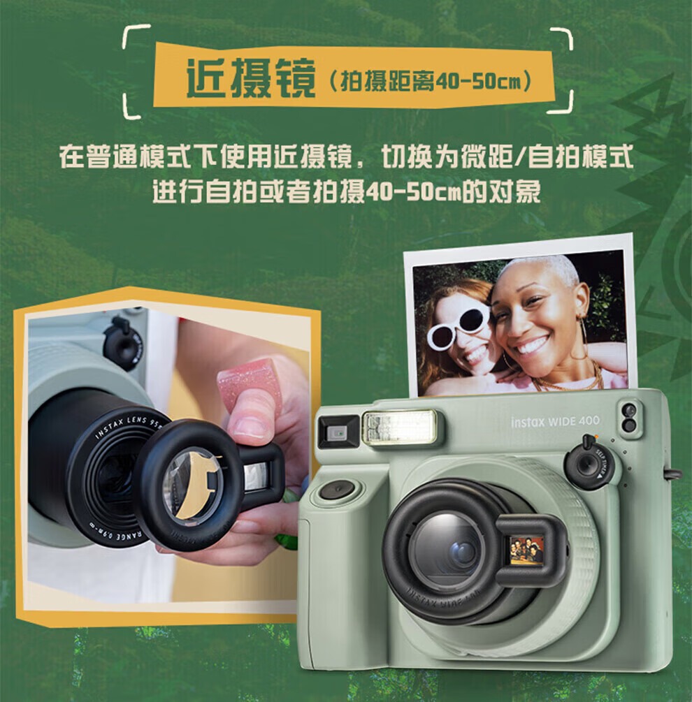【国行正品】富士instax拍立得wide400+旷野图腾礼盒一次成像复古相机相纸 WIDE 400草绿色