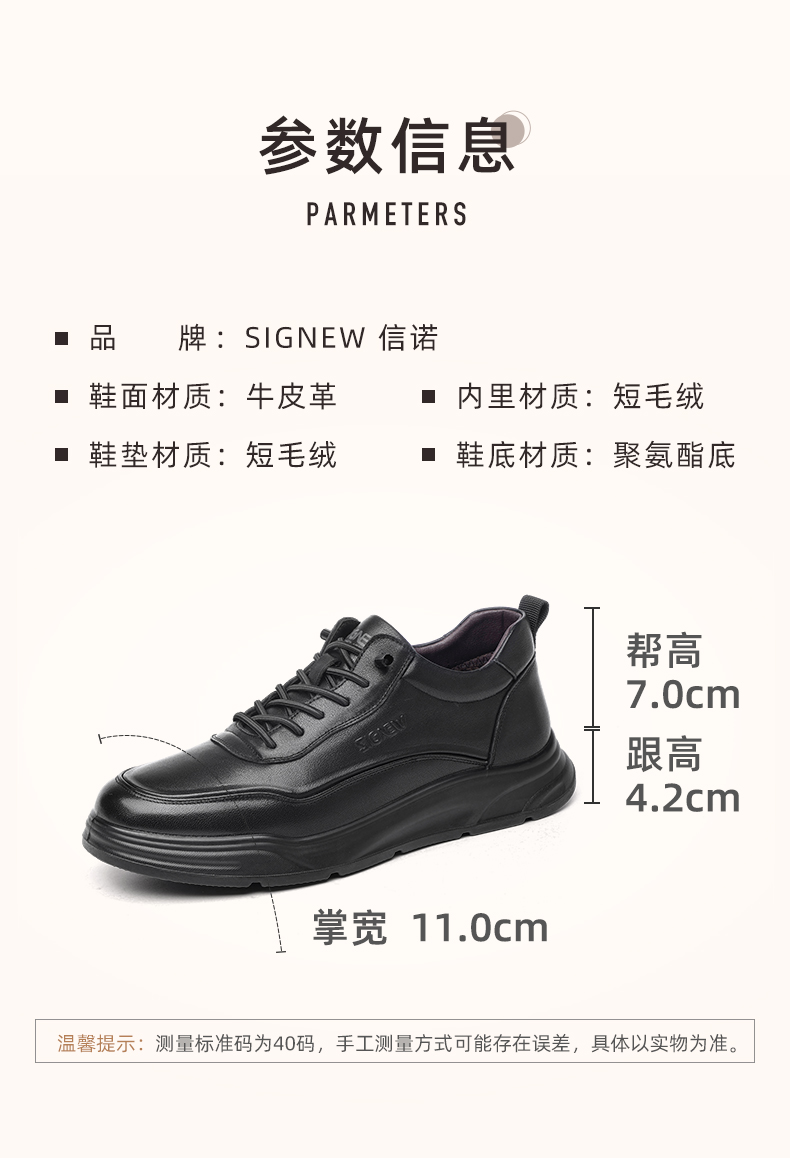 信诺真皮男鞋加绒保暖棉鞋2024冬季新款男士休闲皮鞋中年爸爸鞋子N24M115-90