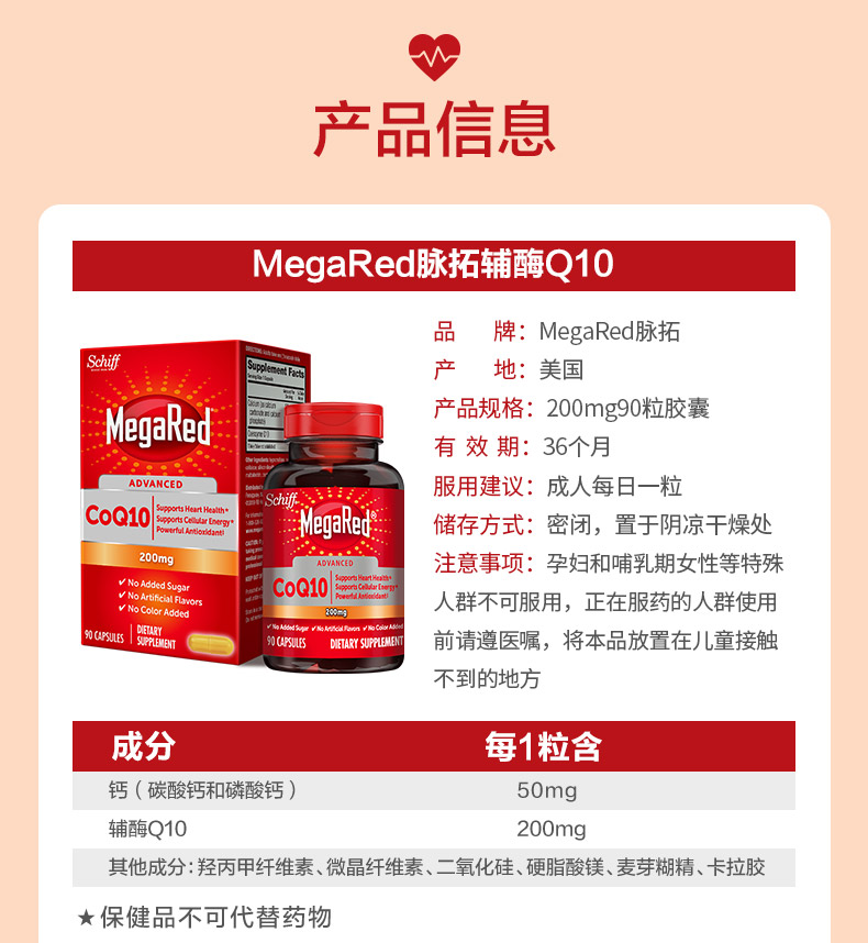 【心脏保护】Schiff旭福MegaRed辅酶Q10 90粒/瓶