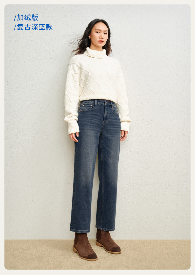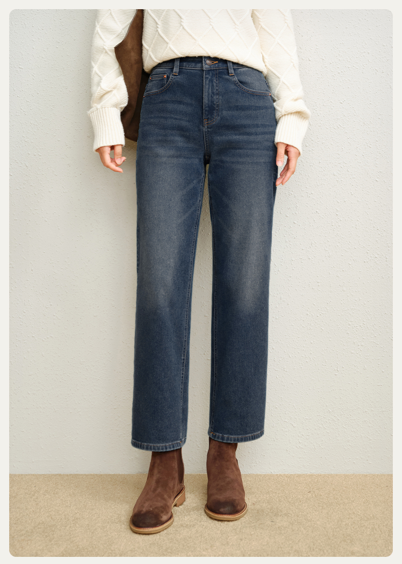 simplepieces秋冬款SPS牛仔小个子保暖加绒高腰磨毛九分蜡笔裤女