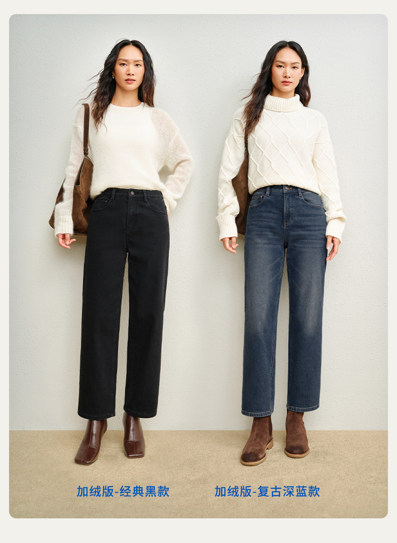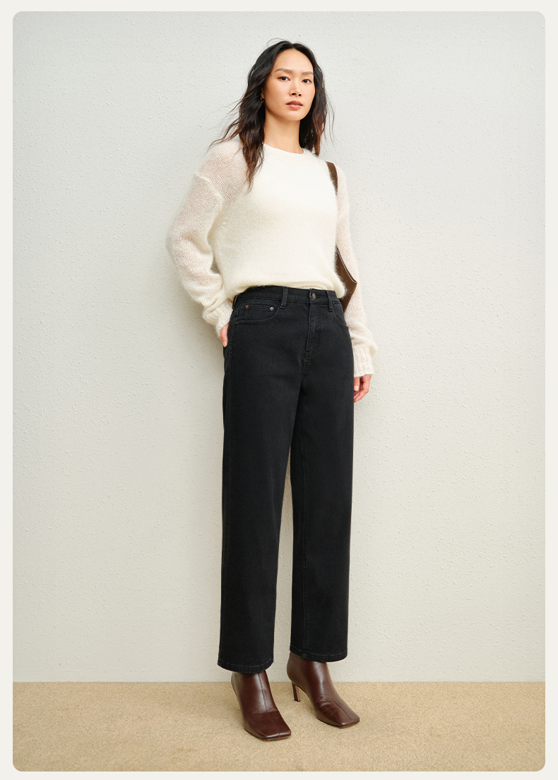 【保暖加绒蛋卷裤】simplepieces冬新款SPS牛仔女黑色九分直筒裤