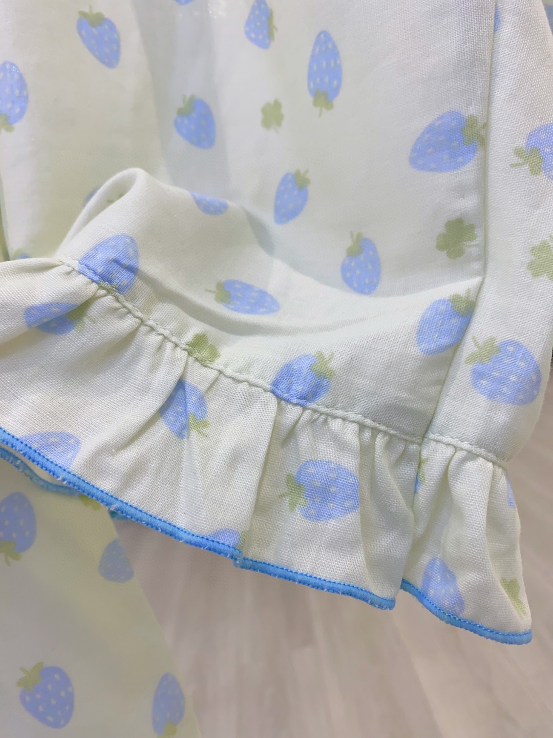 ✨100%全棉双层纱面料,柔软吸汗透气、越洗越软,清新小草莓图案色调温柔