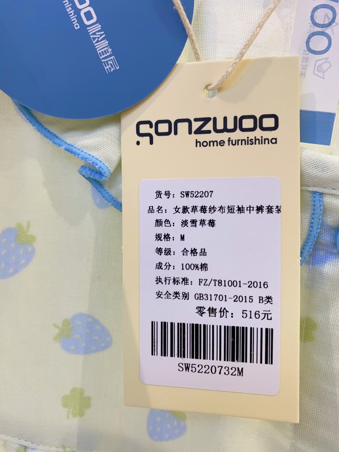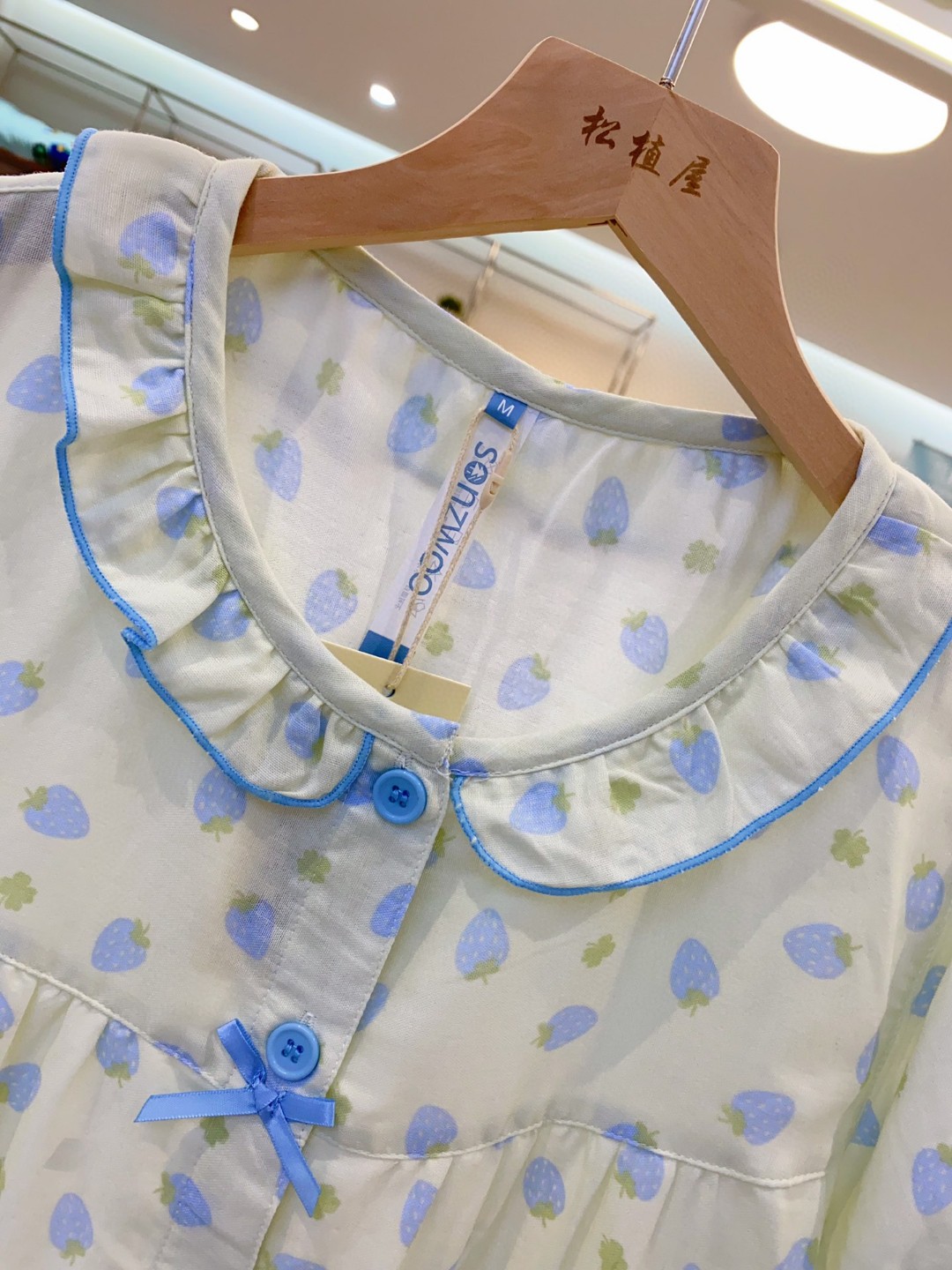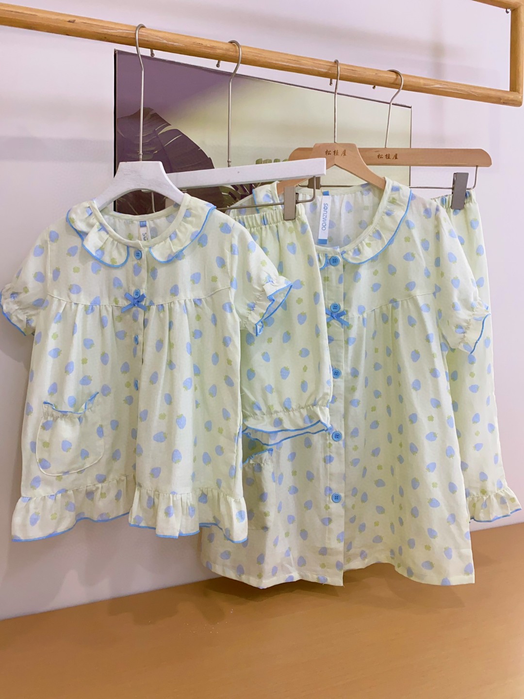 松植屋女款草莓纱布短袖中裤套装