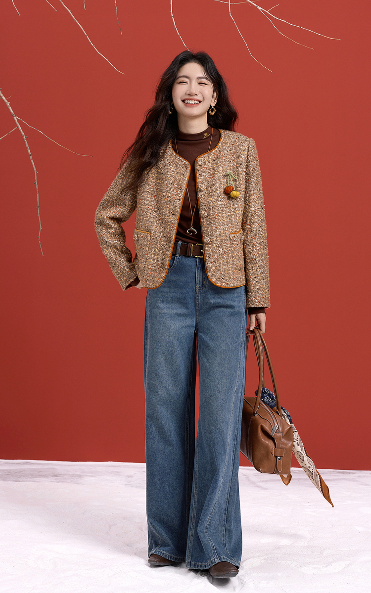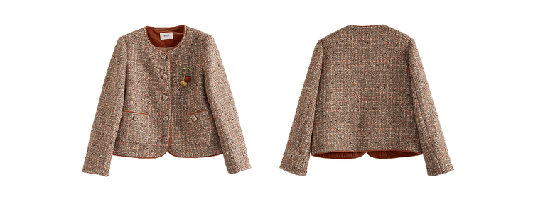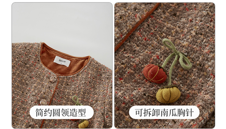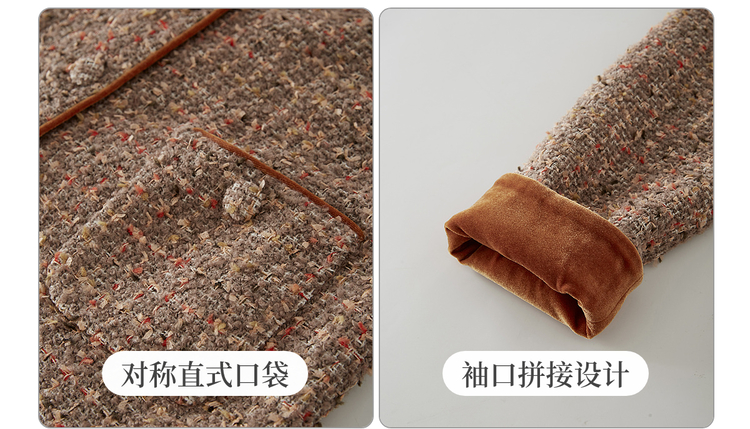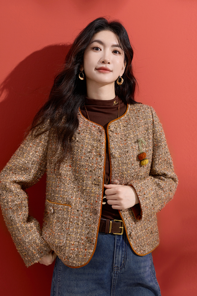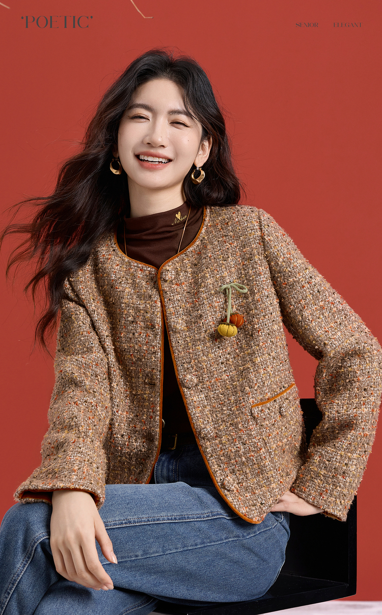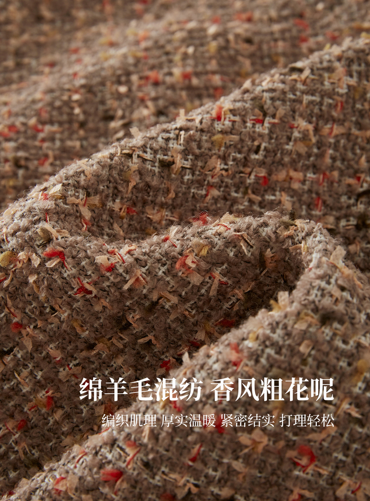 【12/10新品6折】熙世界小香风羊毛粗花呢短外套女秋冬厚款高级感气质圆领开衫上衣