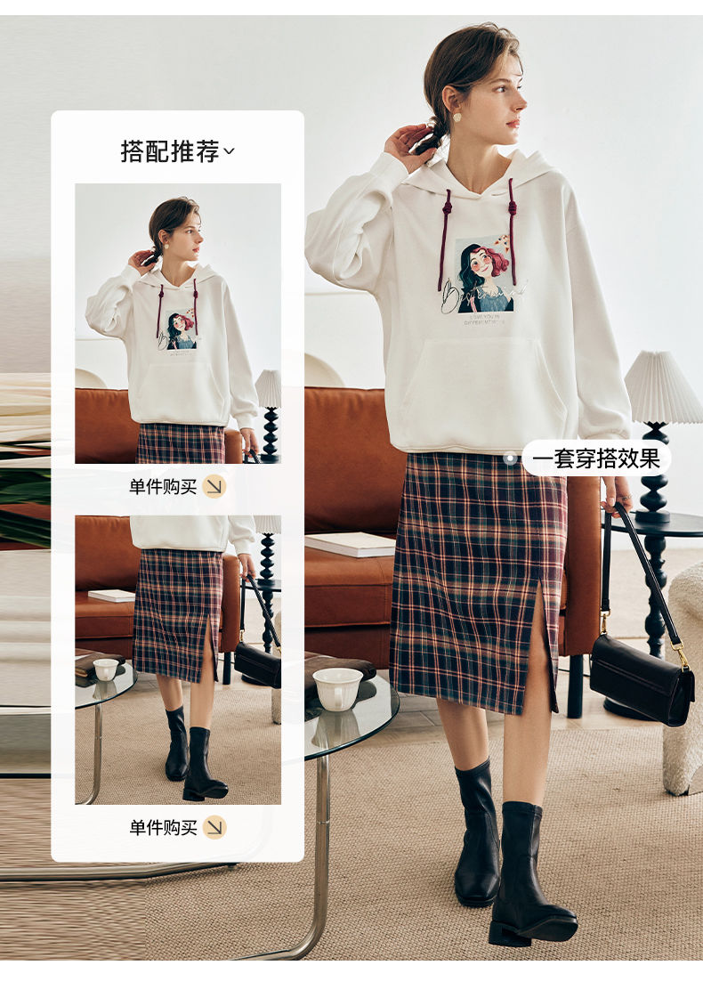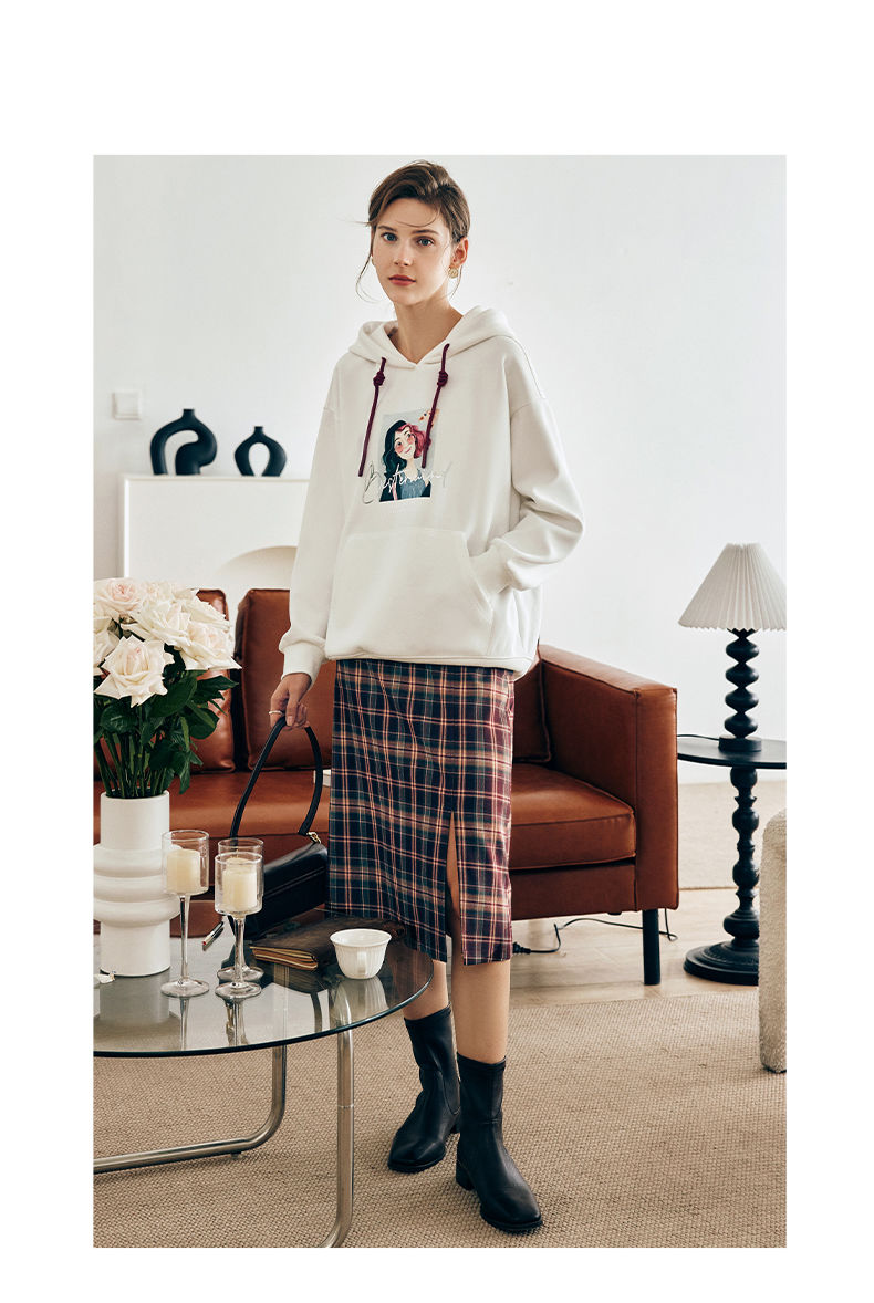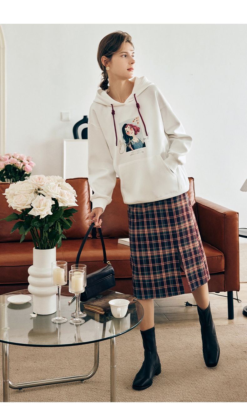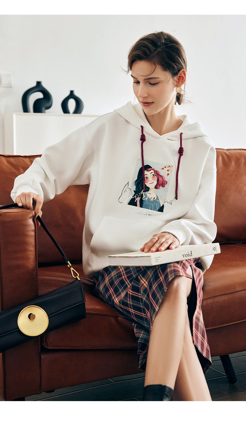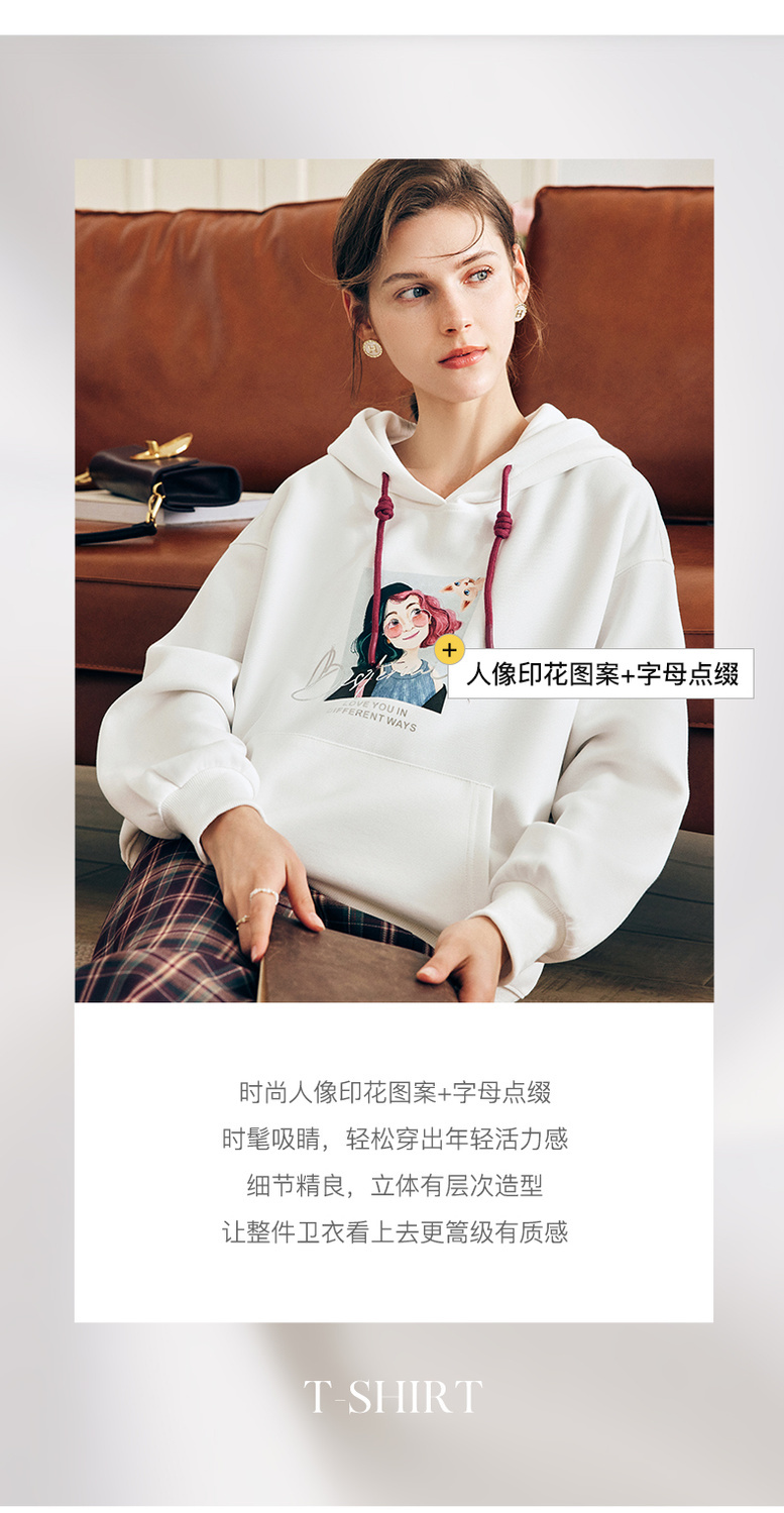 OLrain欧芮儿法式白色连帽卫衣女早春2023年新款宽松慵懒印花上衣