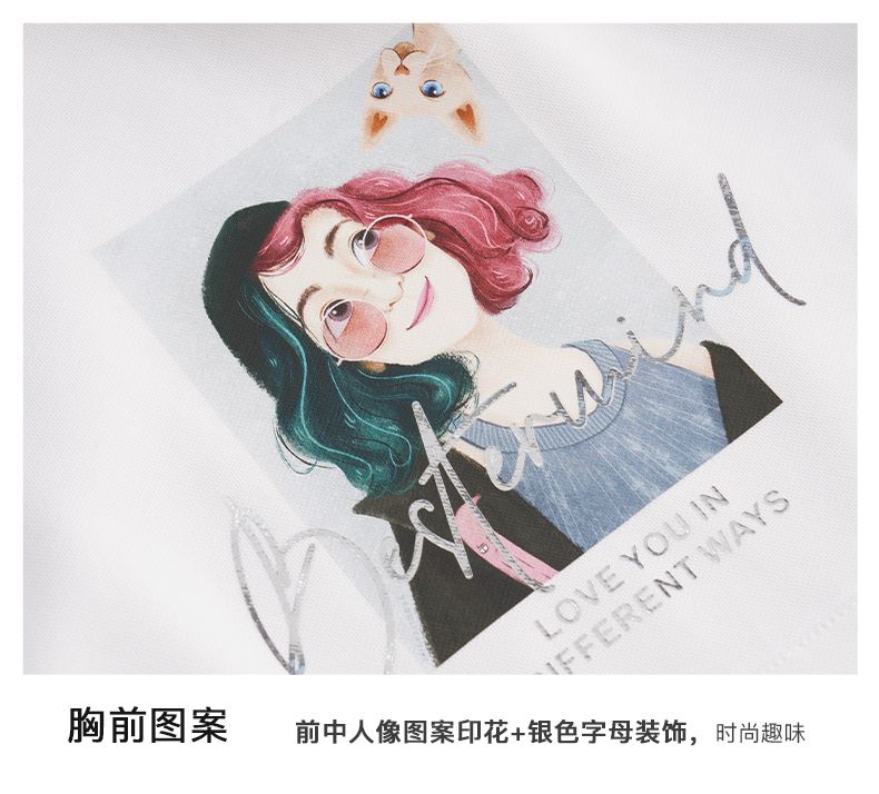 OLrain欧芮儿2026春白色宽松慵懒长袖印花T恤