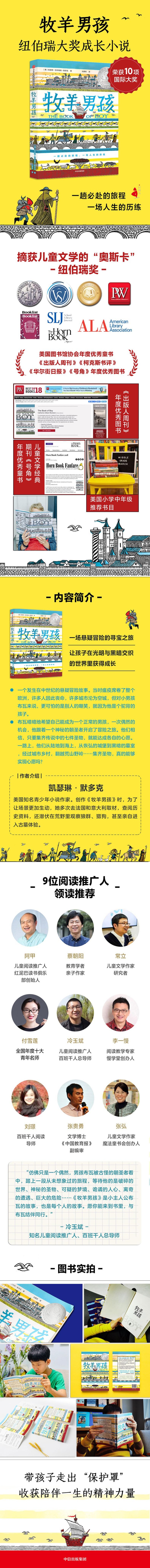 书中的“连串插入式”故事结构使读者不断地遇见新的人物和他们的故事,情节充满张力,而每一个角色的故事像是一则简短的寓言,让读者窥见一个光明与黑暗交织的世界,并让我们跟着小主人公磨炼成长,学着读懂黑暗,心向光明。 《牧羊男孩》荣获: 2019年纽伯瑞儿童文学奖银奖 美国图书馆协会年度优秀童书 《柯克斯评论》年度优秀童书 《学校图书馆期刊》年度优秀童书 《号角》年度优秀童书 《出版人周刊》年度优秀童书 《华尔街日报》年度优秀童书 《书单》杂志编辑选择奖 芝加哥公共图书馆年度优秀童书 专业书评网站BookPage年度优秀童书