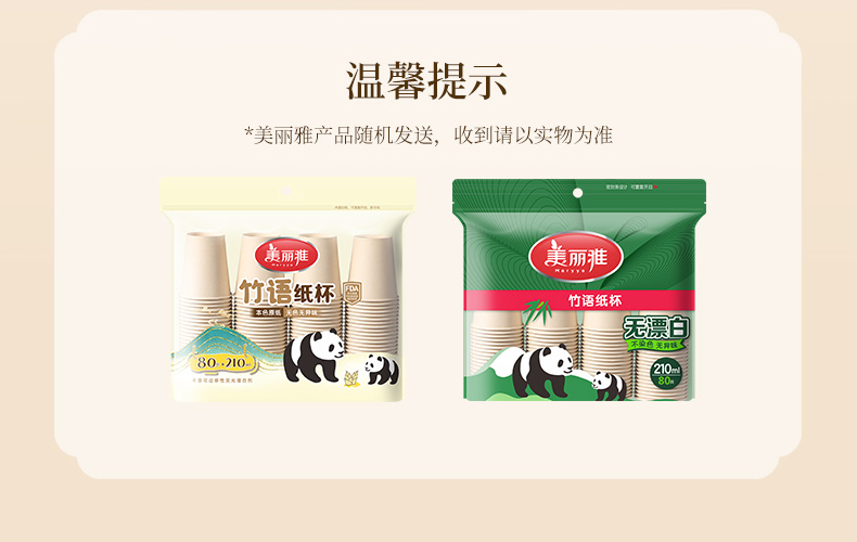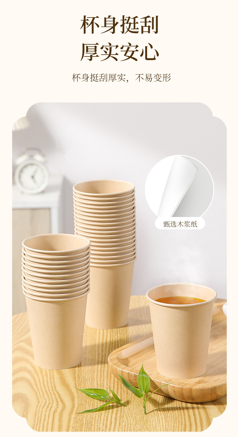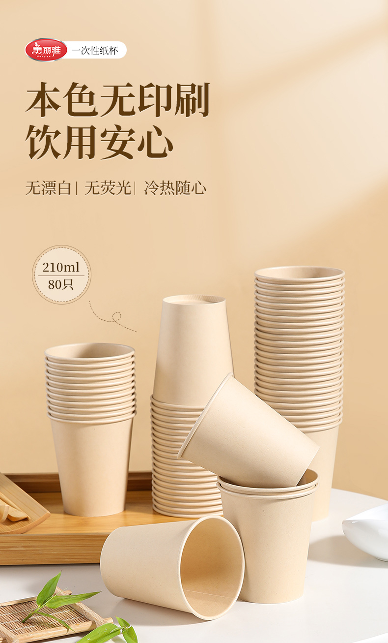 【批发】美丽雅一次性本色纸杯大号家用原本纸浆无漂白 80个/袋