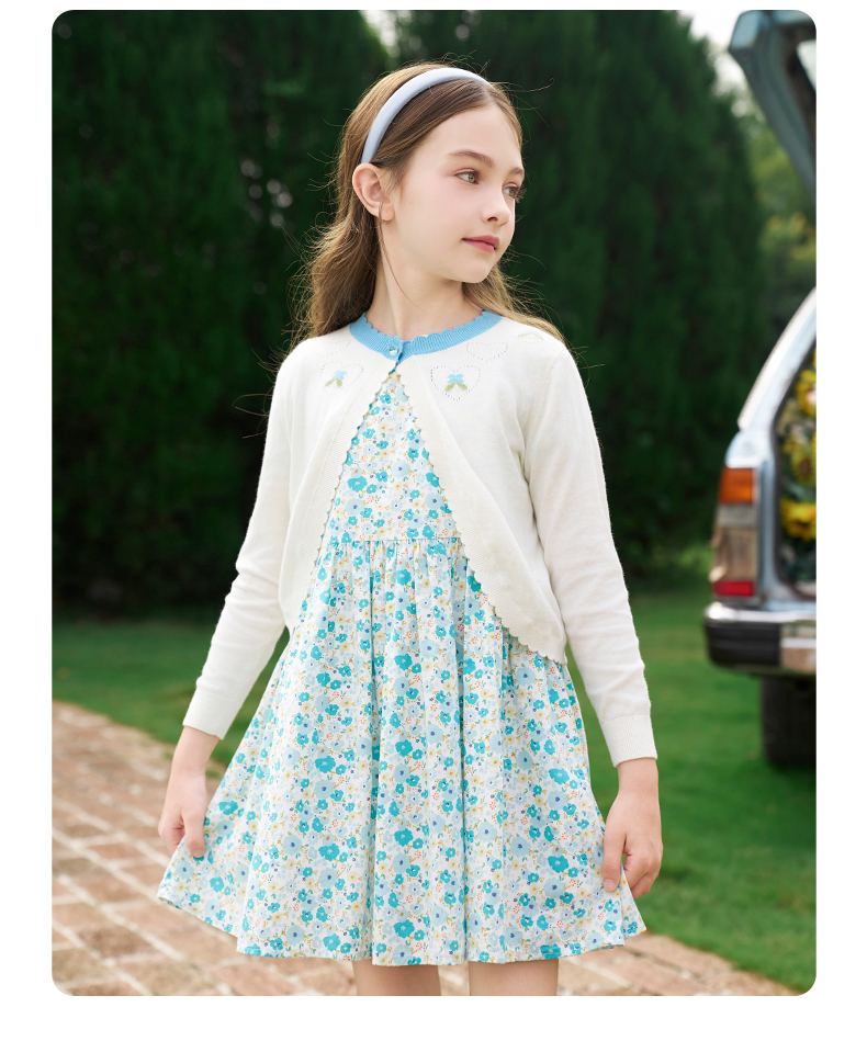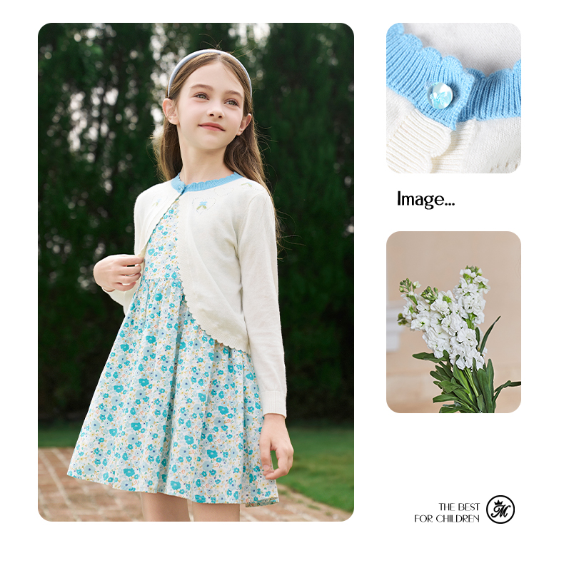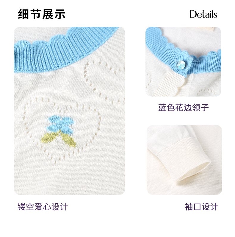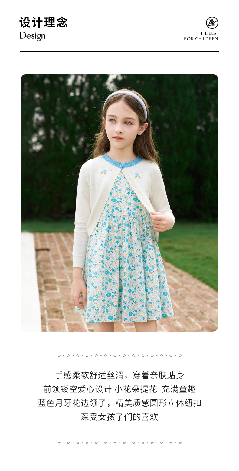 mettekids女童针织开衫春秋时尚一粒扣披肩外套儿童爱心镂空童装
