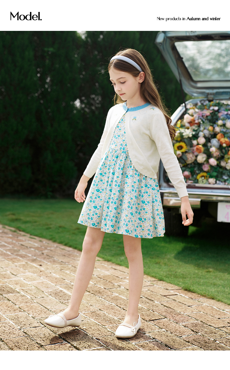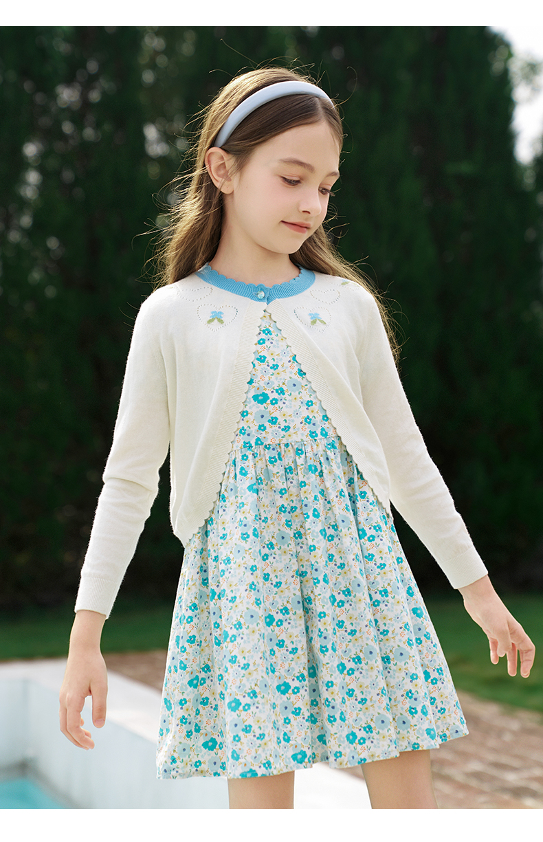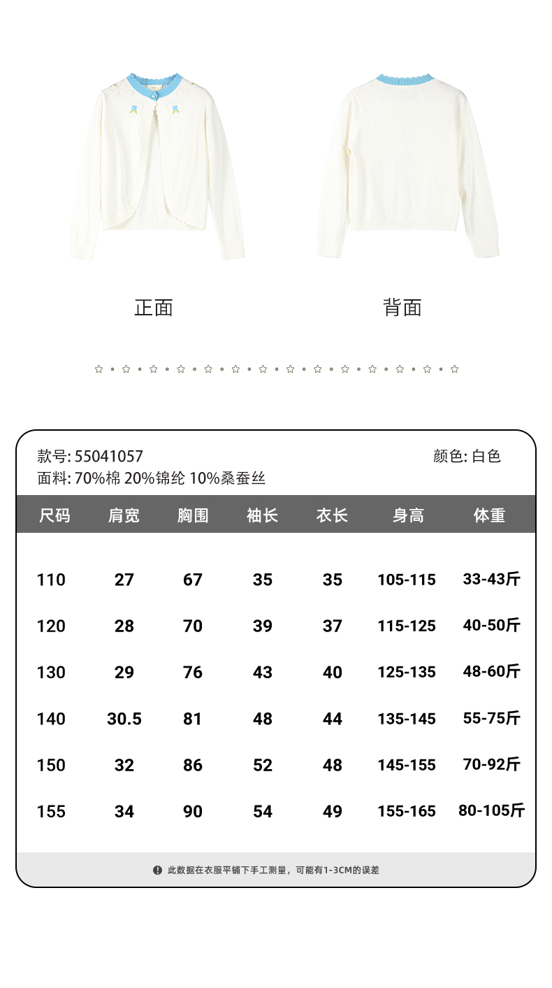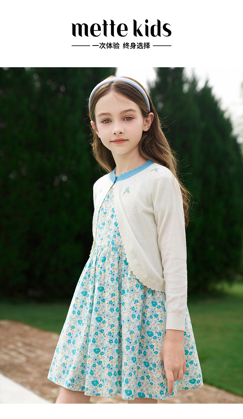 mettekids女童针织开衫春秋时尚一粒扣披肩外套儿童爱心镂空童装
