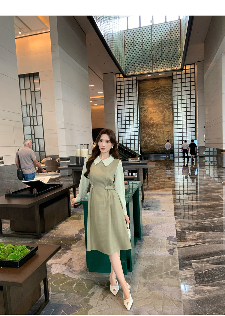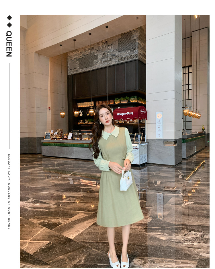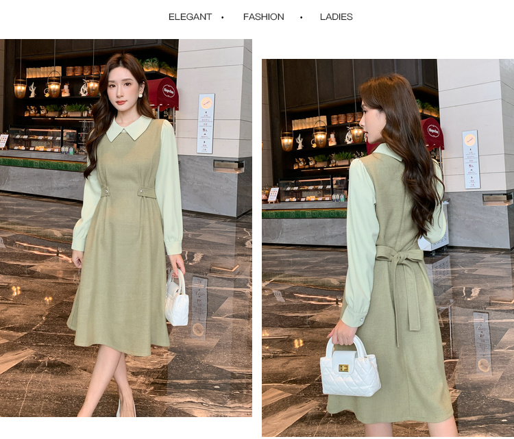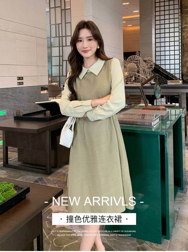 奢姿2024年秋冬新款大码女装撞色优雅裙子胖妹妹减龄气质连衣裙9943891200