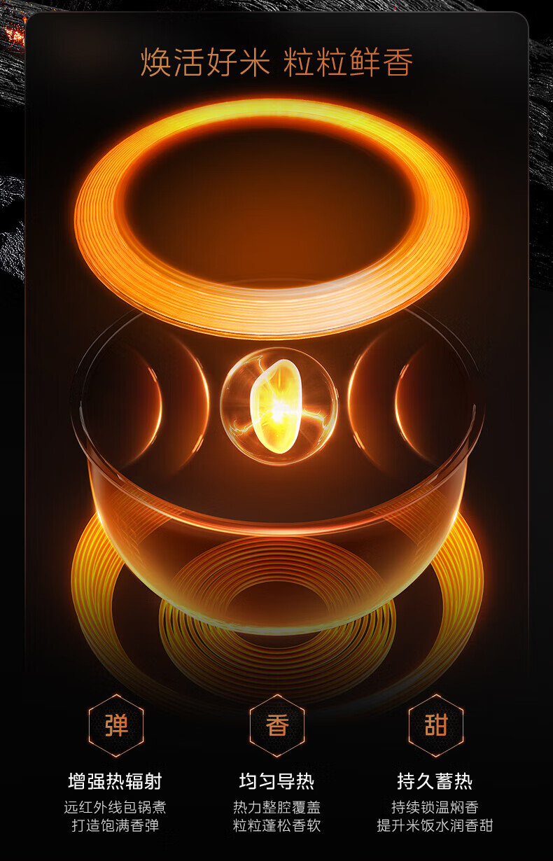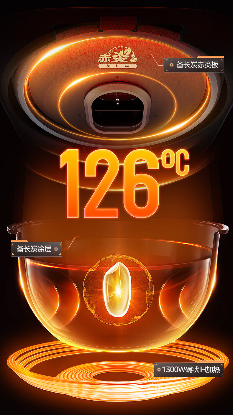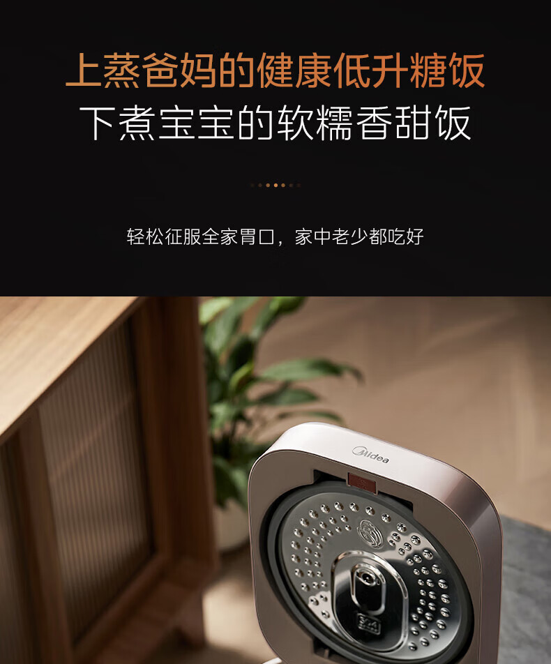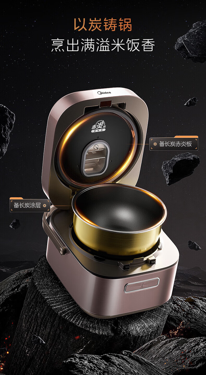 美的(Midea)赤炎炭火电饭煲Pro电饭锅家用立体IH电磁加热 双层快速煮钛金鼎釜智能电饭煲 商场同款 【MB-CFB5089H】赤炎双热源 5L