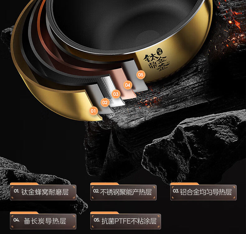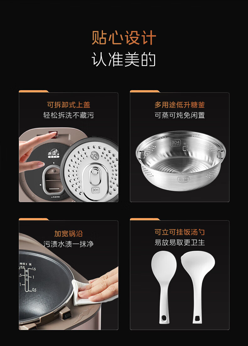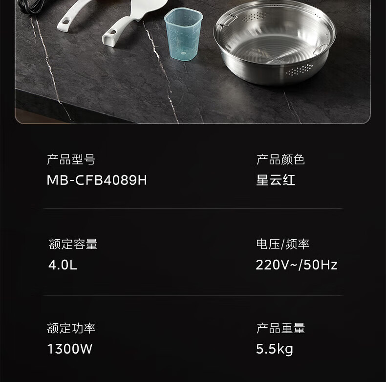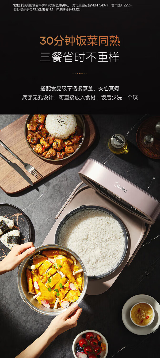 美的(Midea)赤炎炭火电饭煲Pro电饭锅家用立体IH电磁加热 双层快速煮钛金鼎釜智能电饭煲 商场同款 【MB-CFB5089H】赤炎双热源 5L
