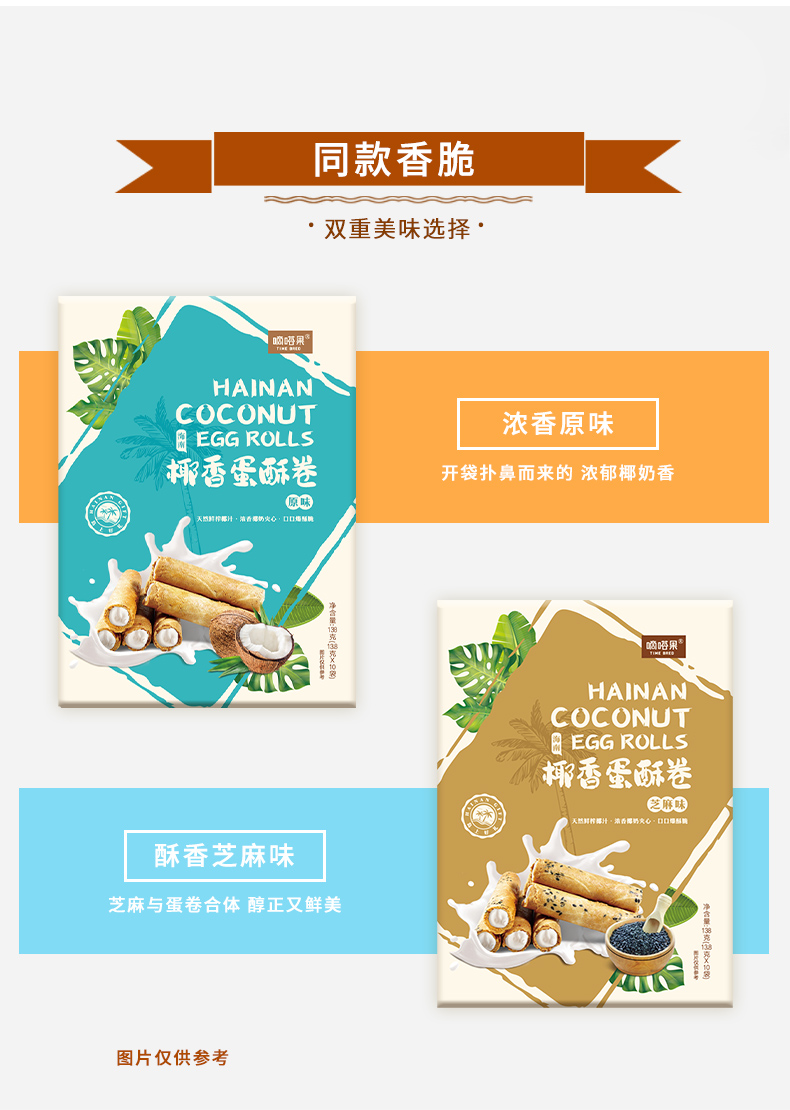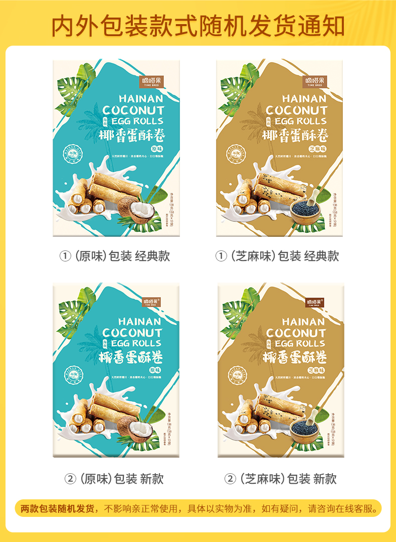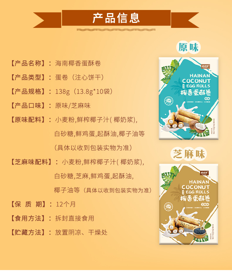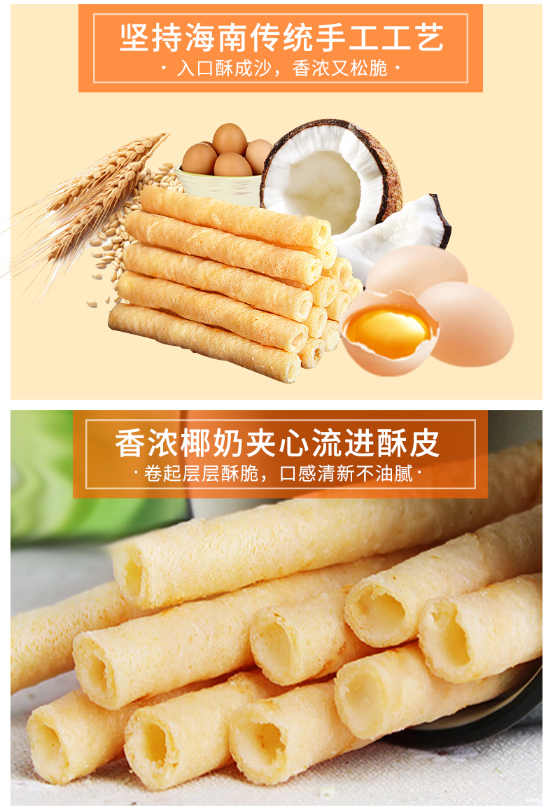 海南特产嘀嗒果椰香蛋酥卷138g盒套装夹心蛋卷饼干休闲小吃零食