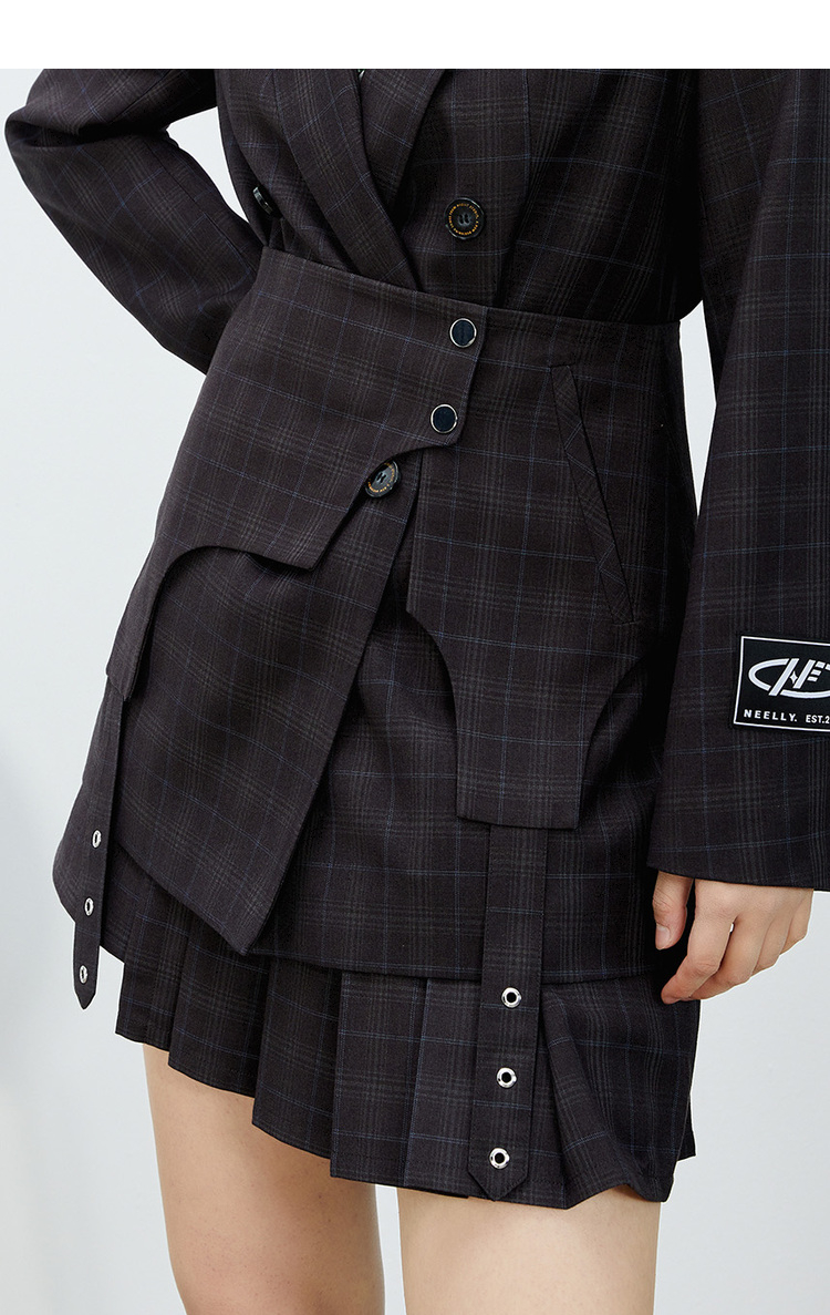NEELLY纳俪商场同款百褶裙女2022春季新款不规则裙摆设计百搭时尚N22022E01081