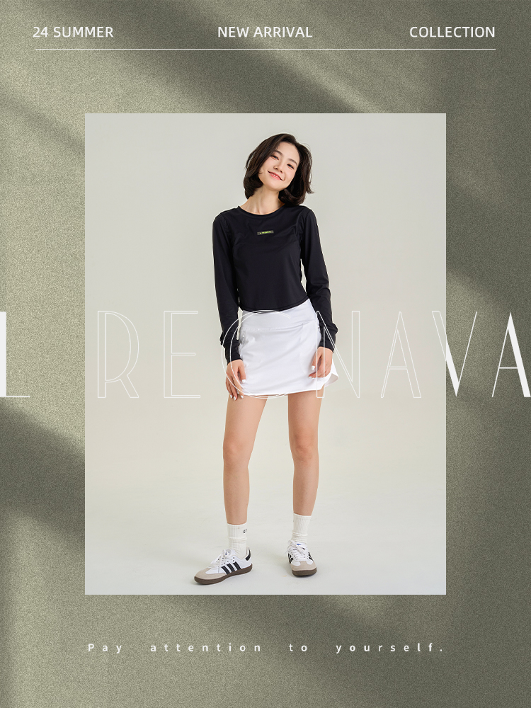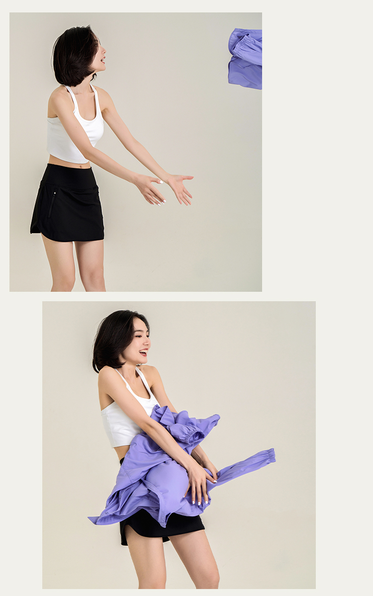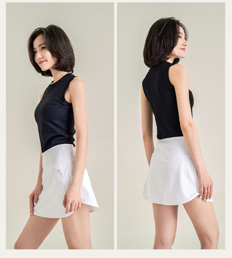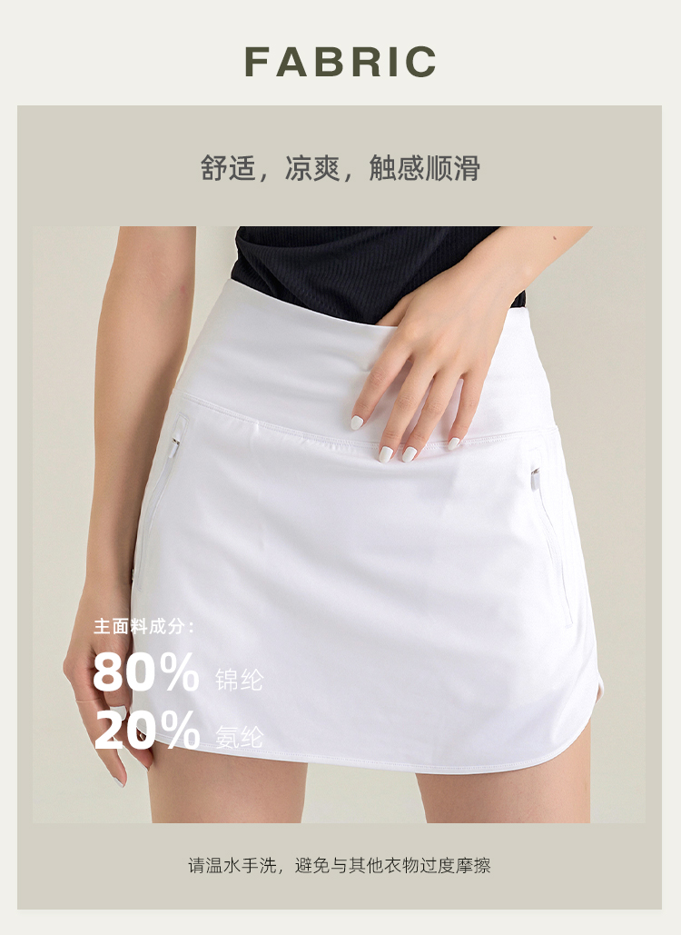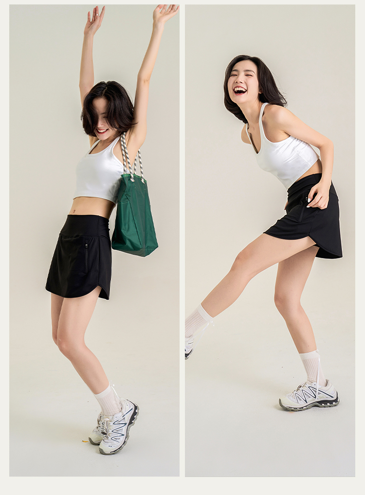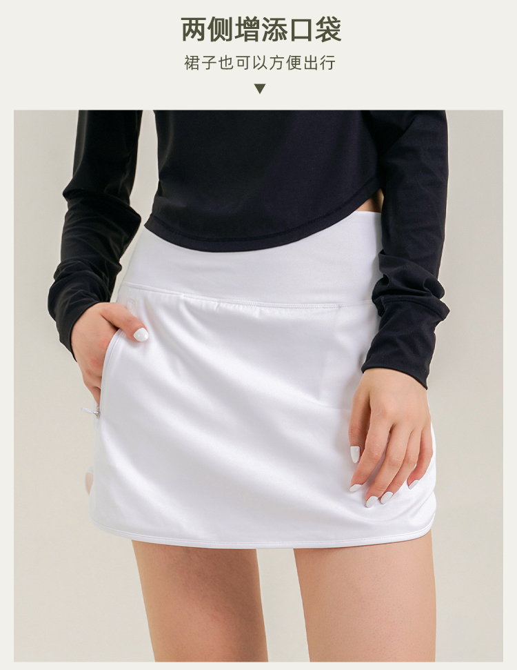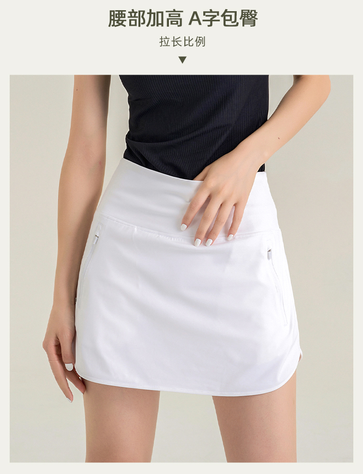 休闲A字包臀裙 带安全裤 侧拉链口袋网球裙 下摆弧度显腿长