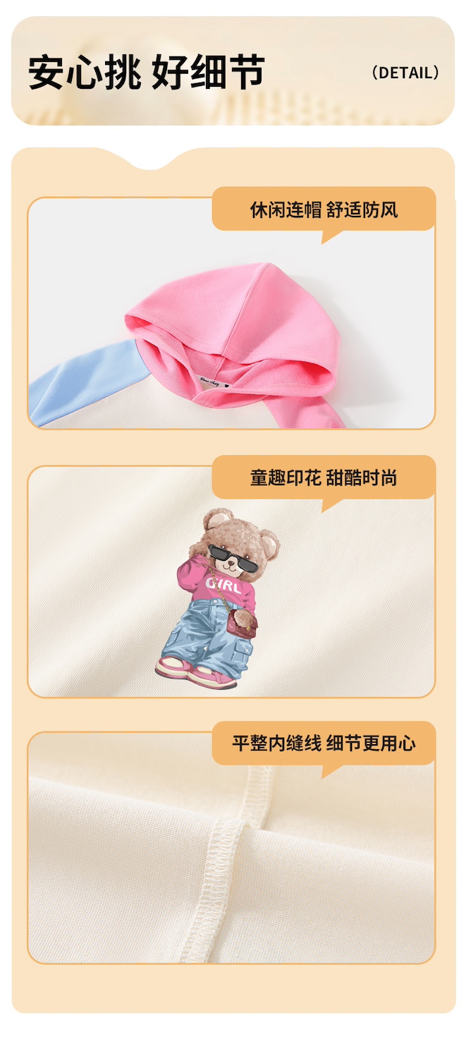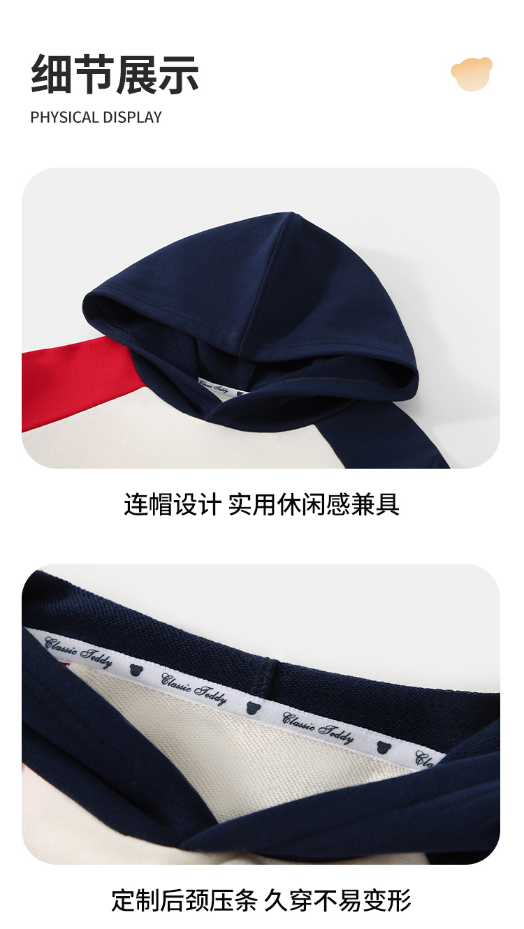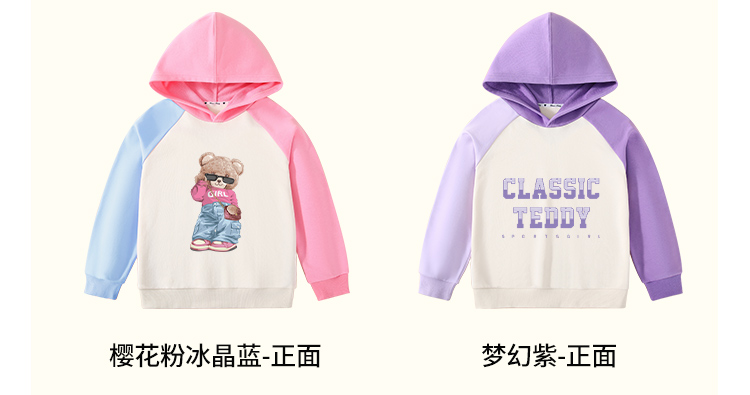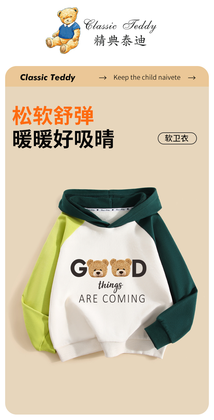 【男女同款】【110-160】【精典泰迪】男女童连帽纯棉卫衣