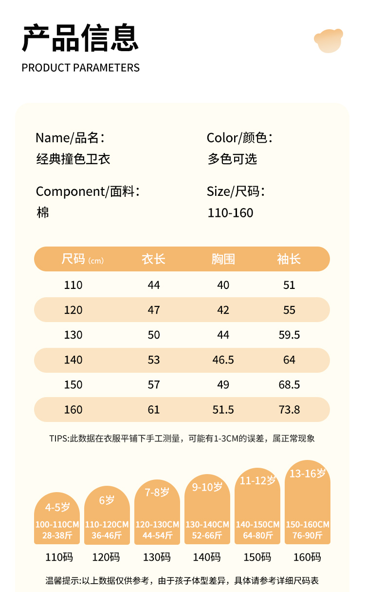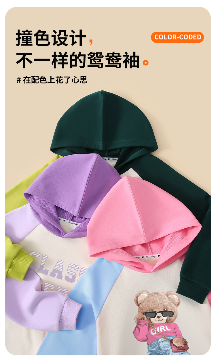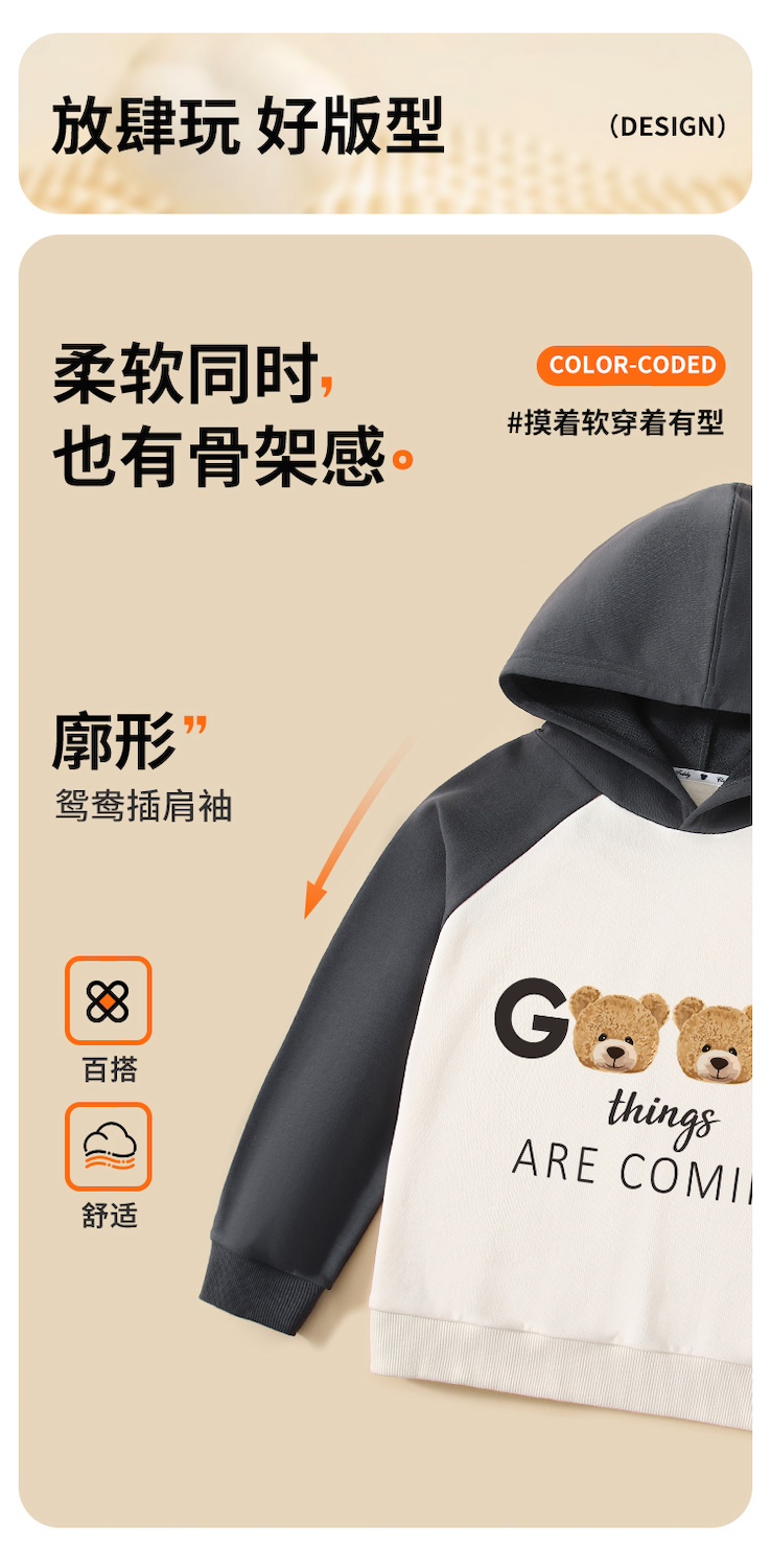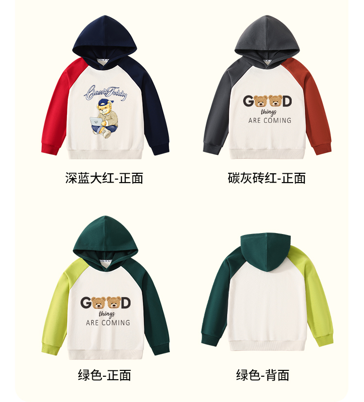 【男女同款】【110-160】【精典泰迪】男女童连帽纯棉卫衣