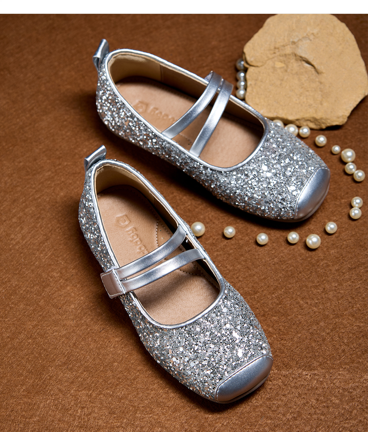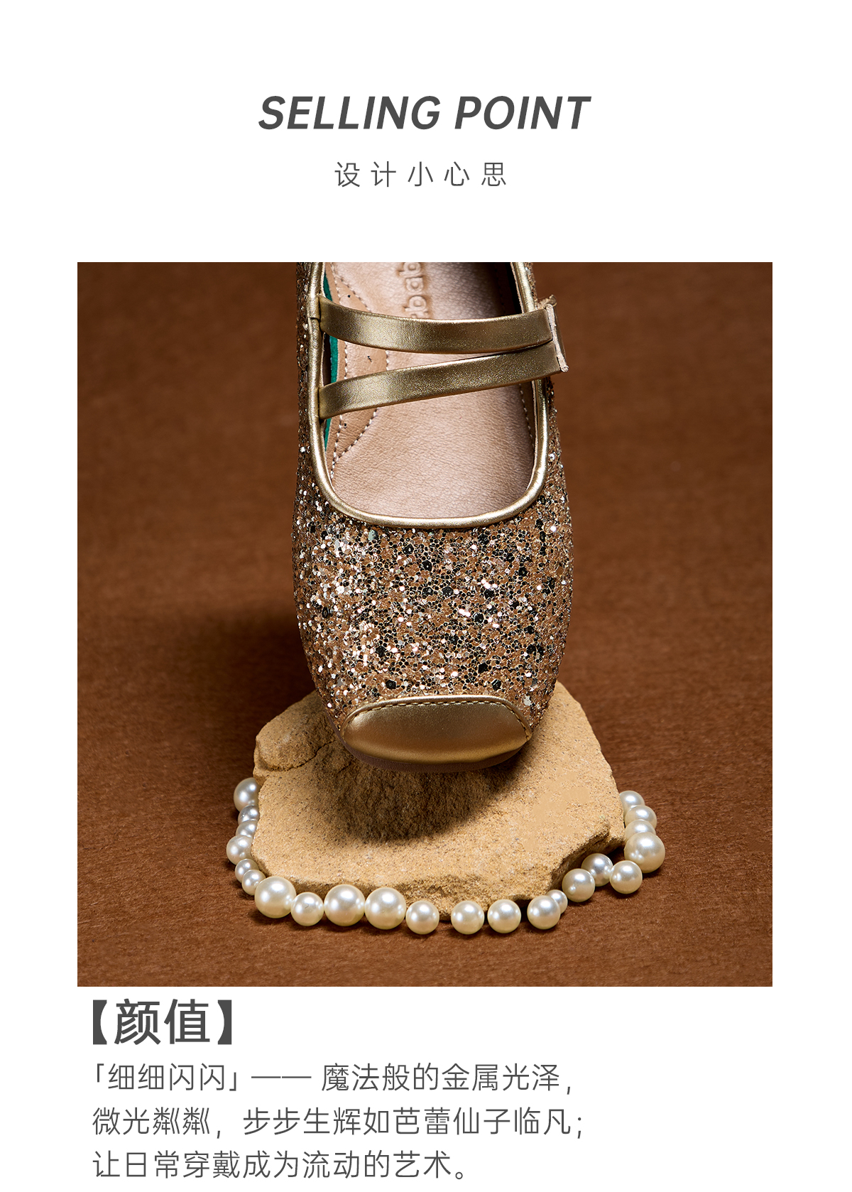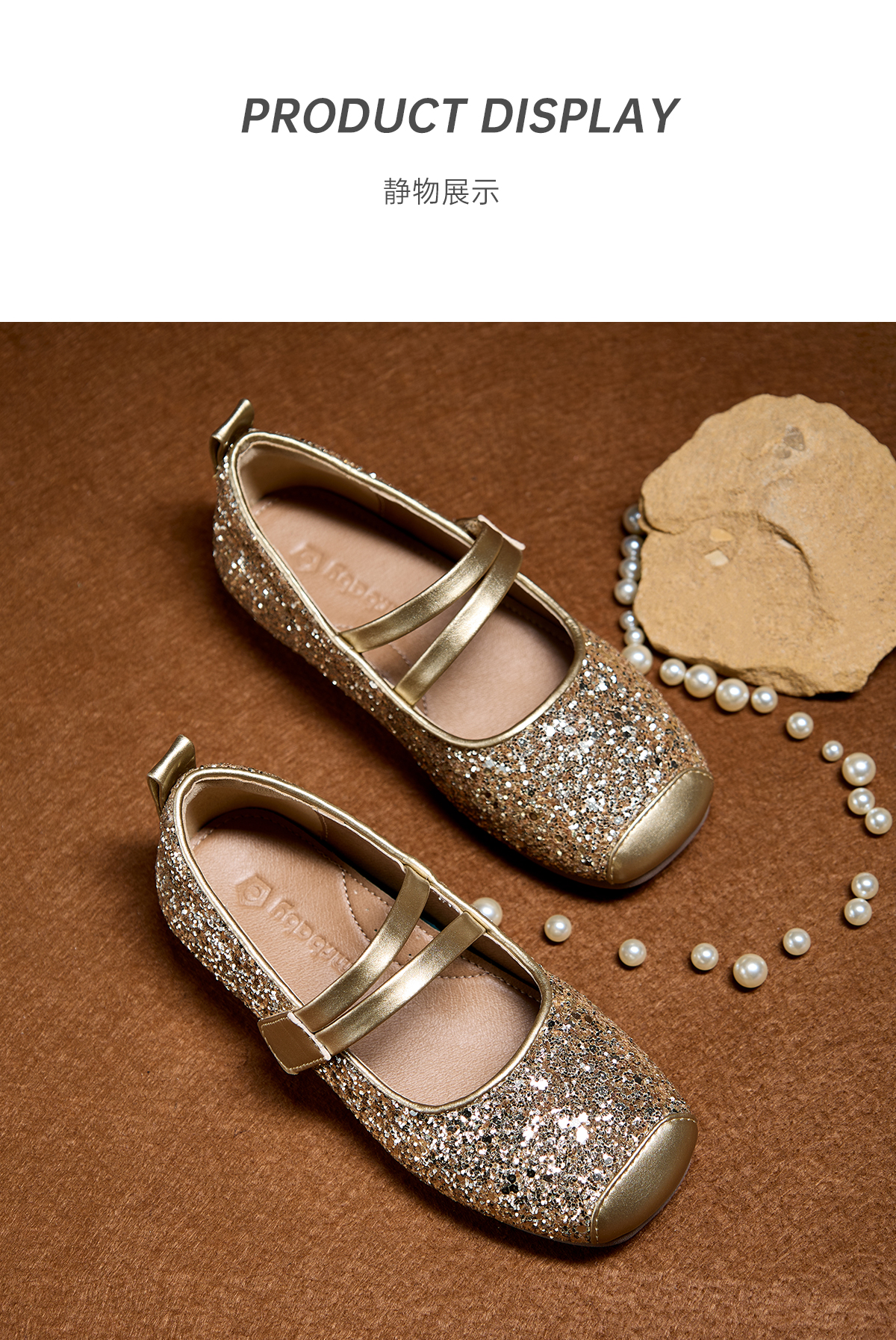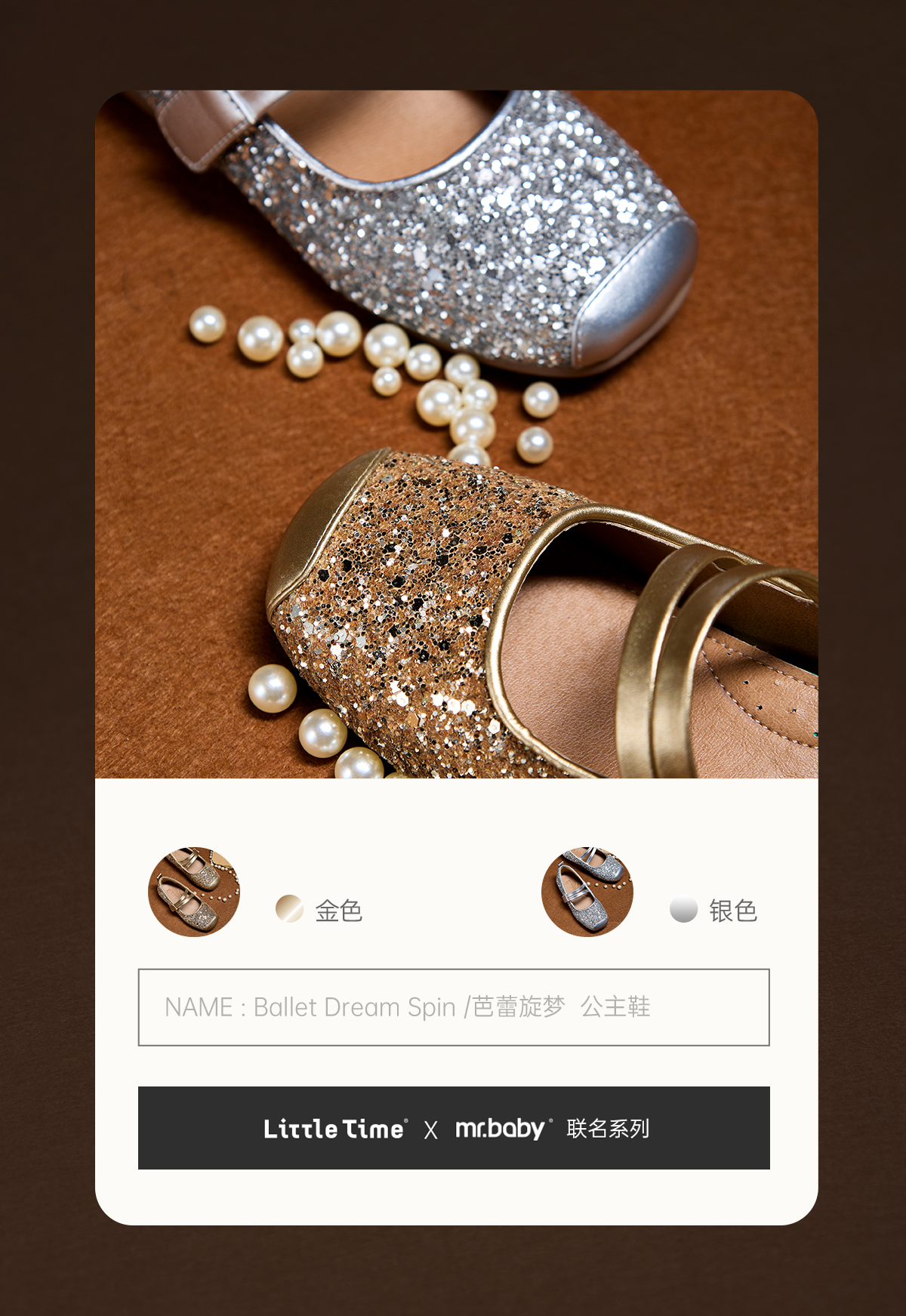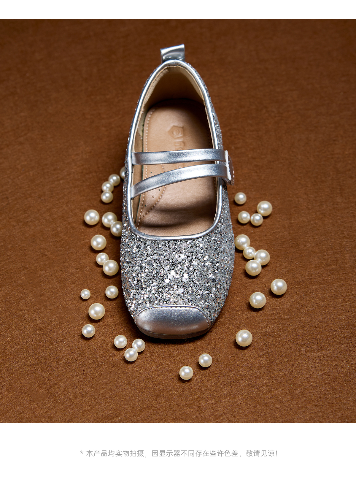 littletime女童公主鞋2025春夏新皮鞋儿童亮片金银芭蕾鞋礼服单鞋