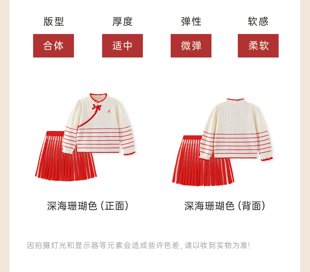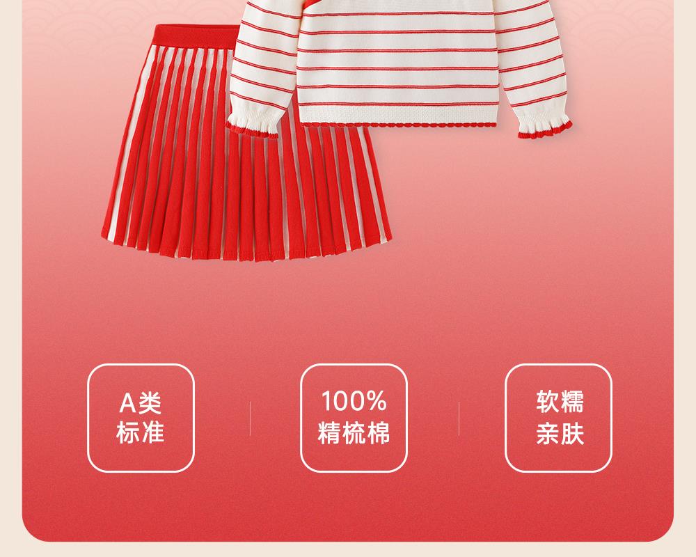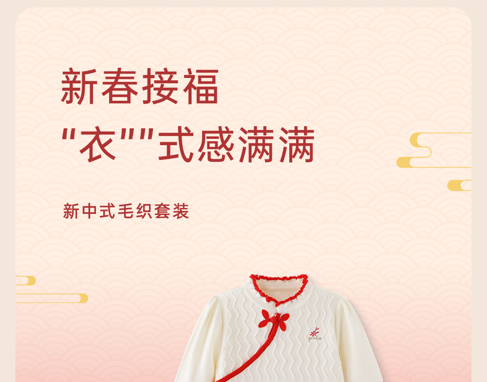 英氏儿童套装春秋季女童长袖新中式纯棉拜年服套装YRACJ1R002A