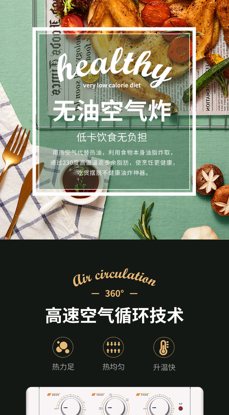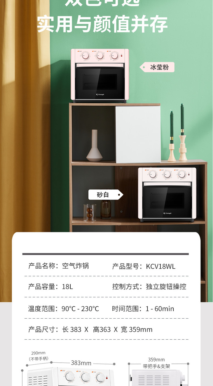长帝KCV18WL长帝空气炸锅烤箱家用多功能炸烤合一无油电炸锅薯条
