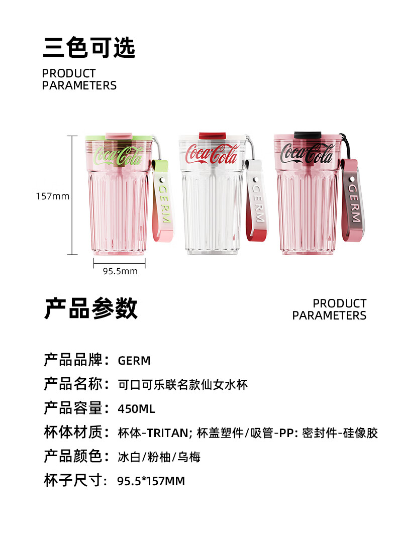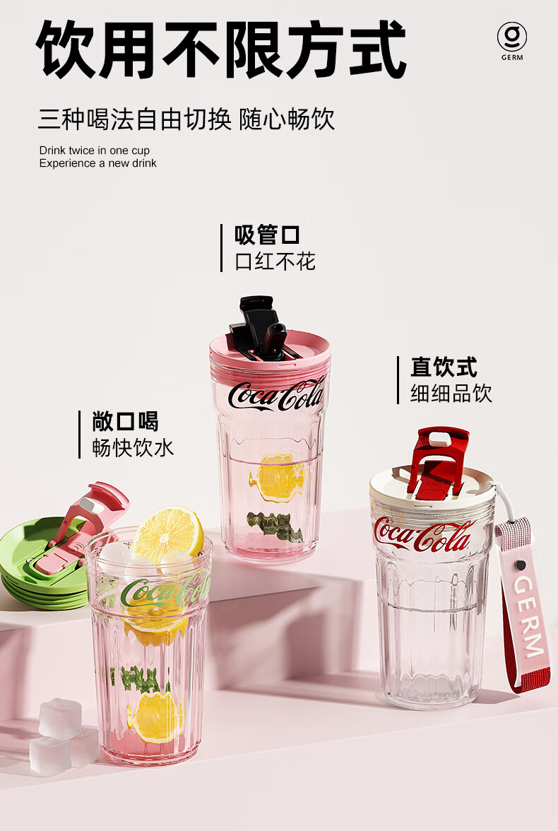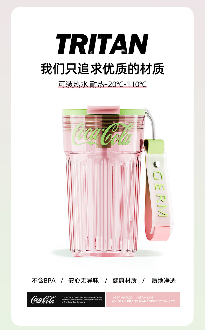 格沵(germ)可口可乐联名仙女水杯Tritan女士杯子高颜值车载便携水杯【仙女杯系列】