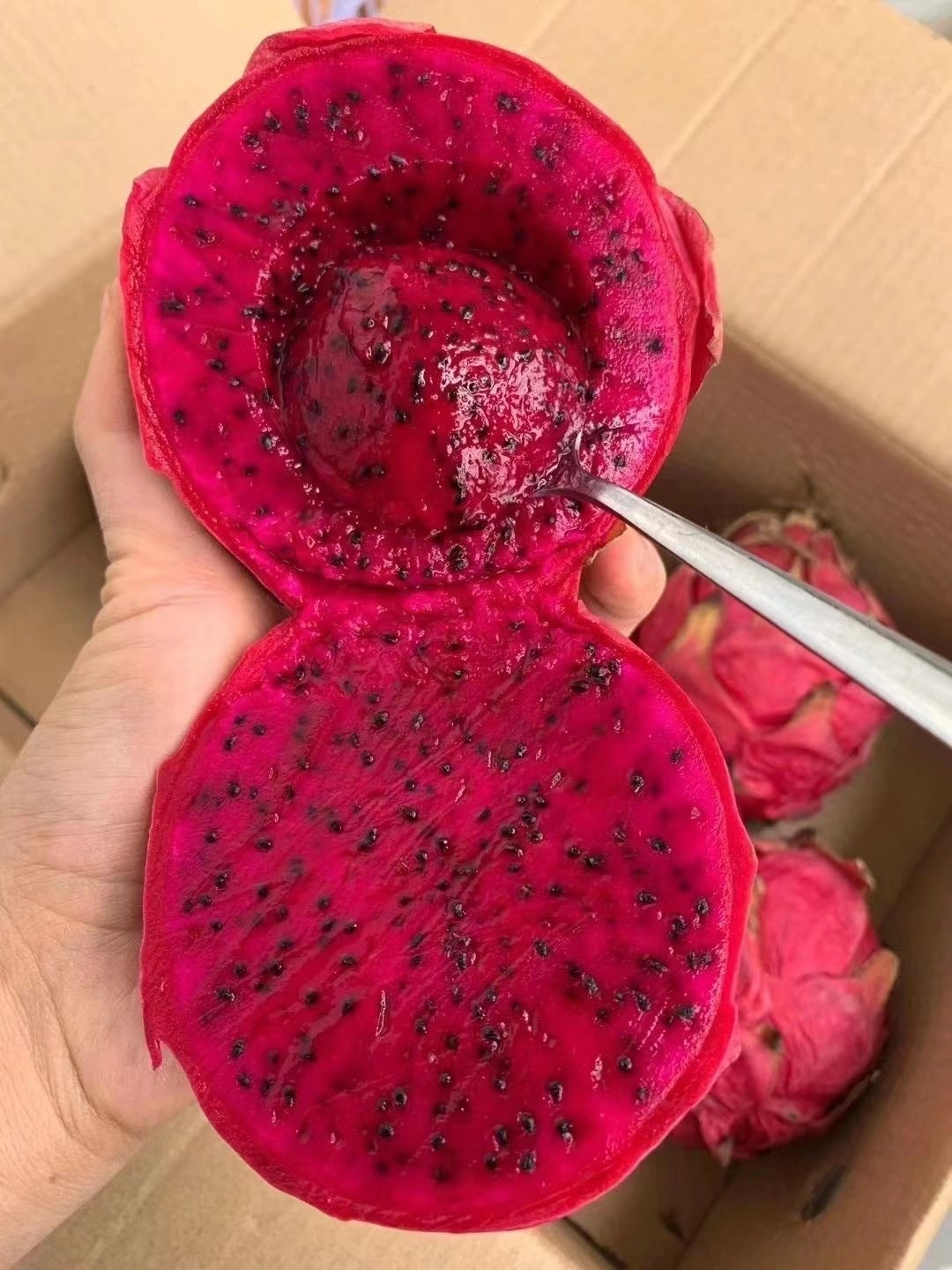 金都一号火龙果 实现了真正的在树上熟,所以果子超薄的表皮看着会有点蔫蔫的 ,不过这样甜度能达到20-23🍯 一切都是值得的!