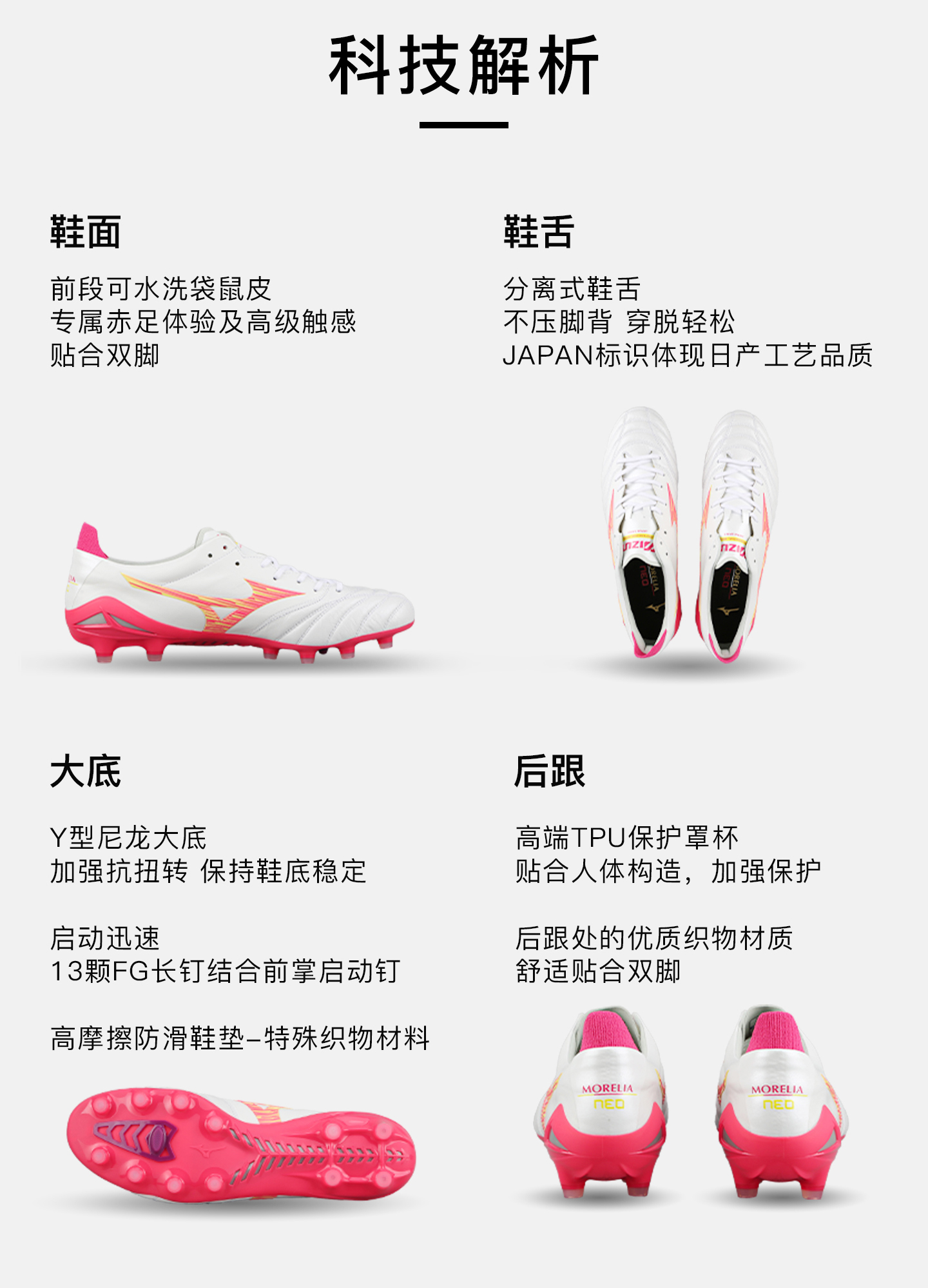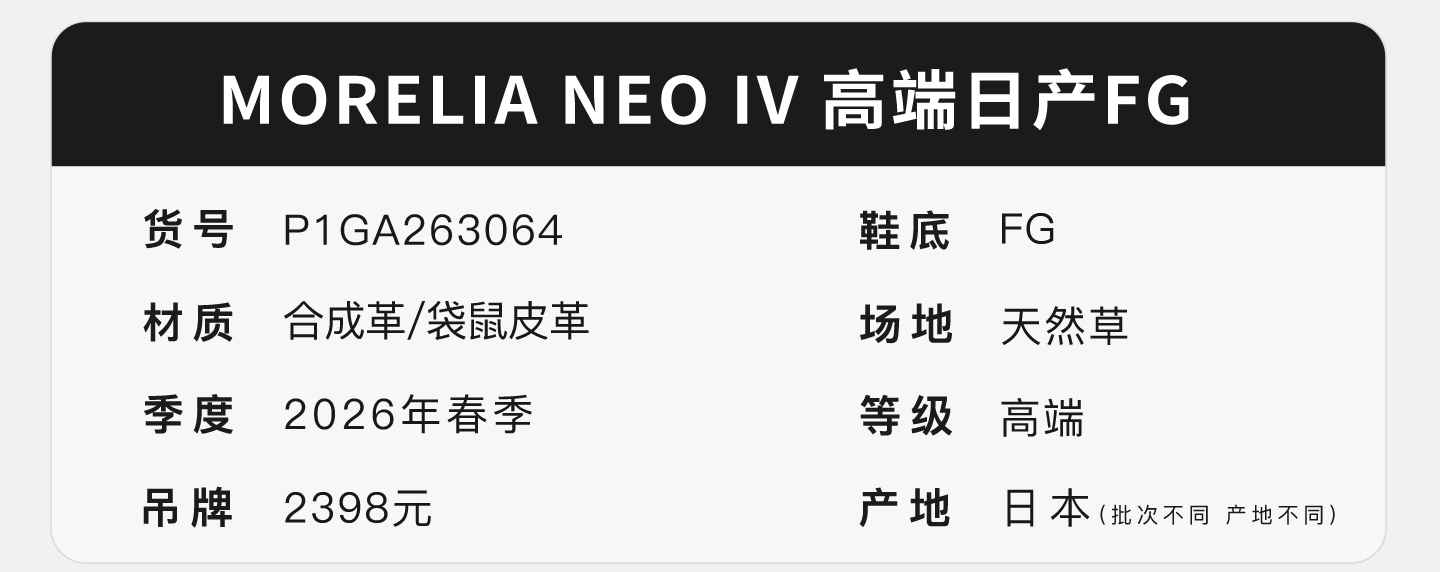 小李子Mizuno美津浓 莫雷拉Morelia Neo 4 高端FG长钉袋鼠皮成人足球鞋男