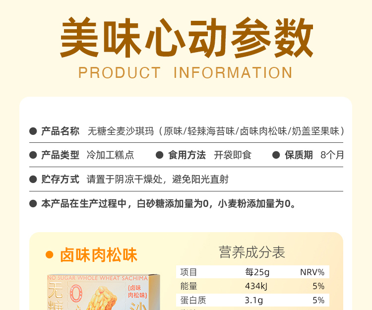 严选 | 无糖全麦沙琪玛 高蛋白 高膳食纤维 多种口味 软糯清香