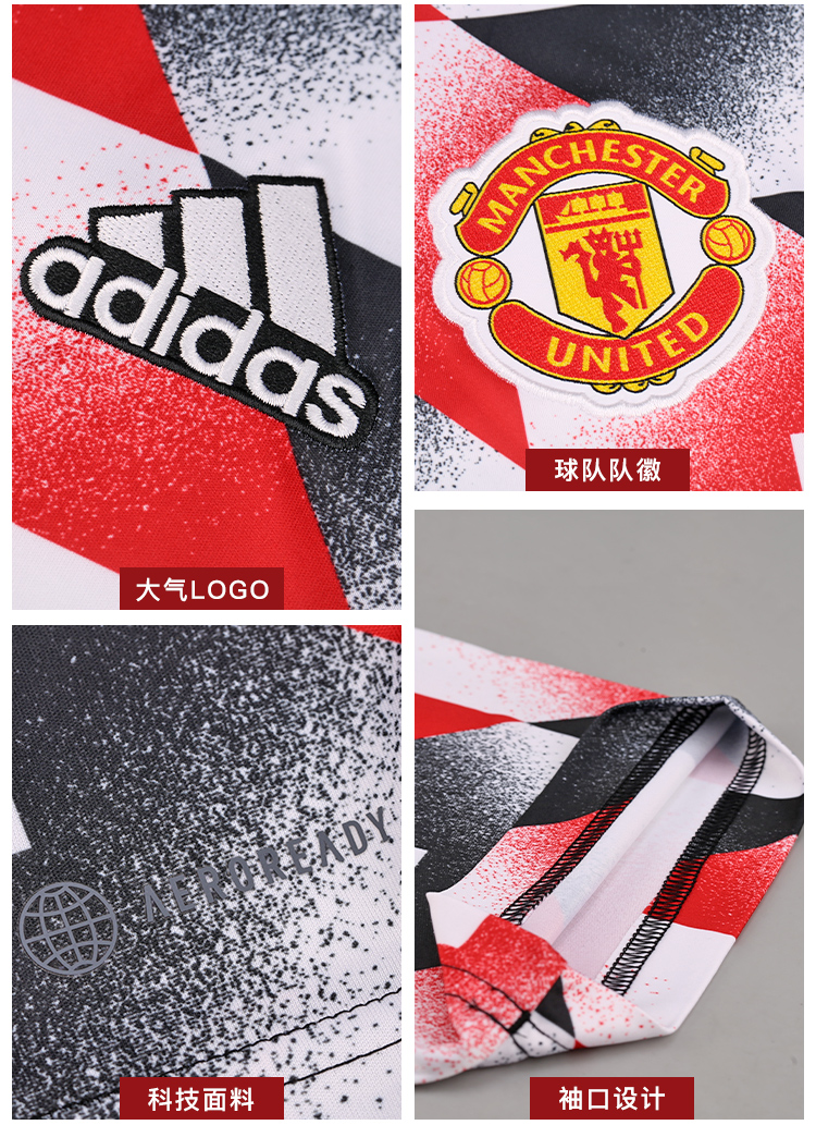 ADIDAS/阿迪达斯22-23赛季曼联赛前热身足球球衣成人短袖男H56682