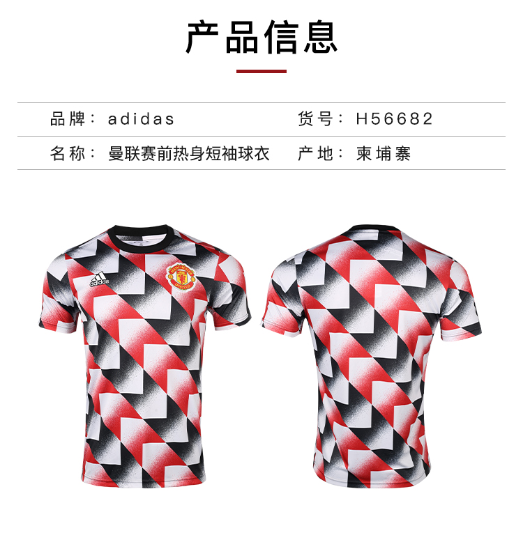 ADIDAS/阿迪达斯22-23赛季曼联赛前热身足球球衣成人短袖男H56682 商品图1