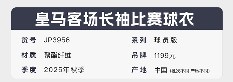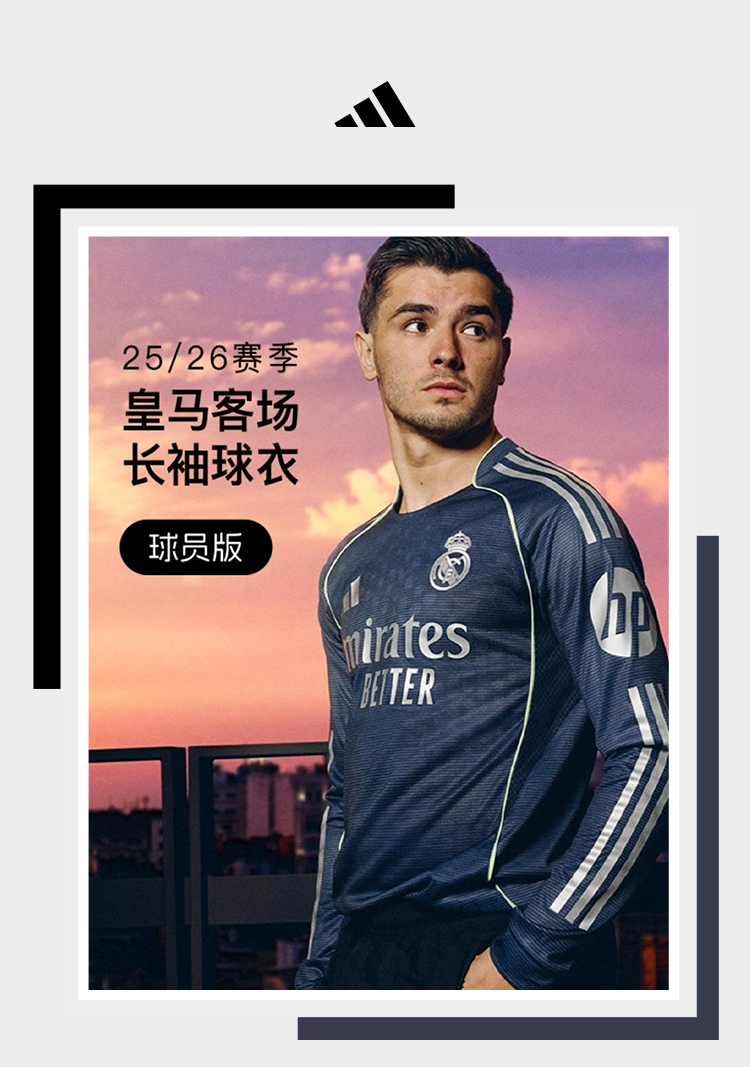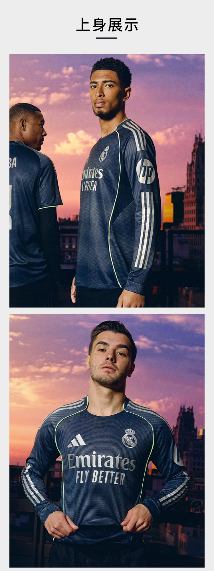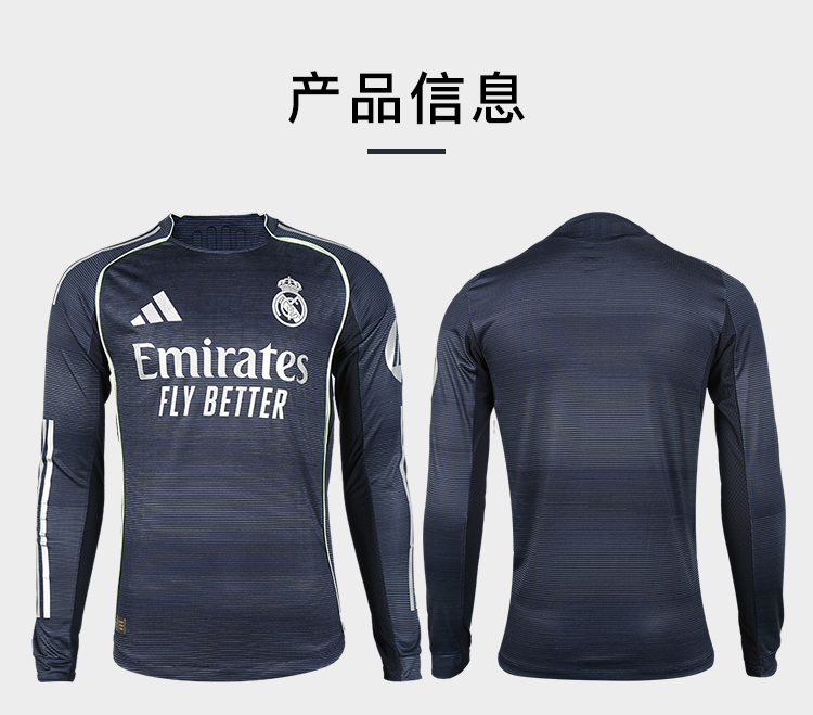 小李子阿迪达斯25/26赛季皇家马德里球员版客场长袖球衣男JP3956【加印号码臂章 联系客服】