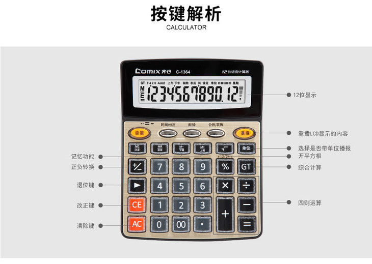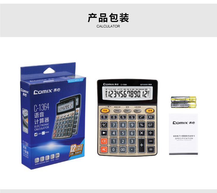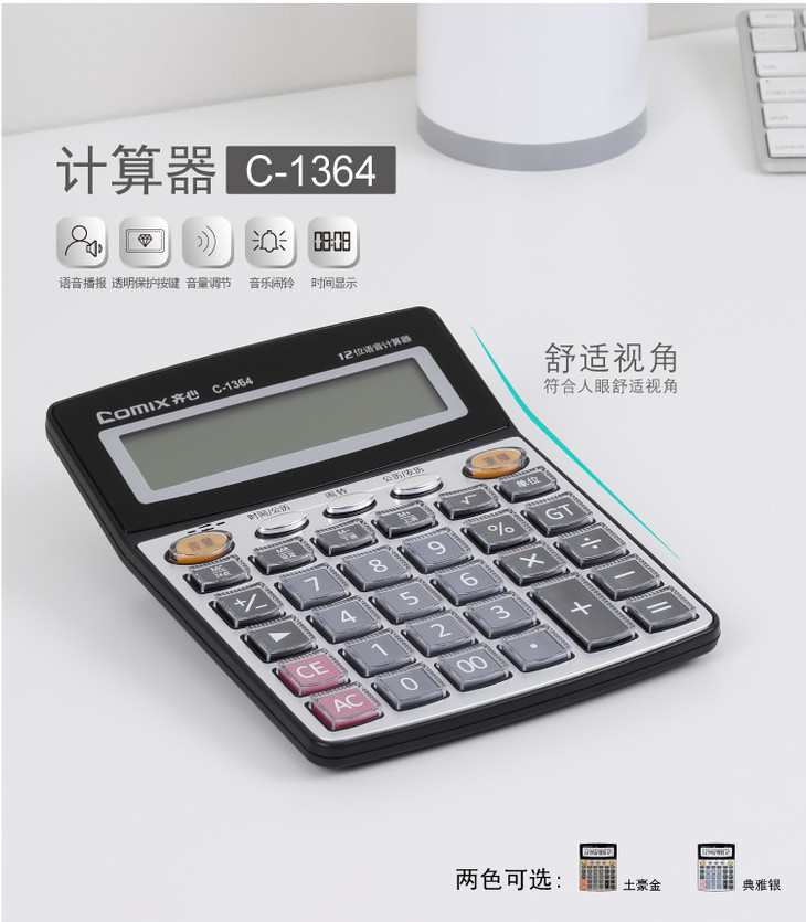齐心语音计算器C-1364配色办公用品学生用多功能