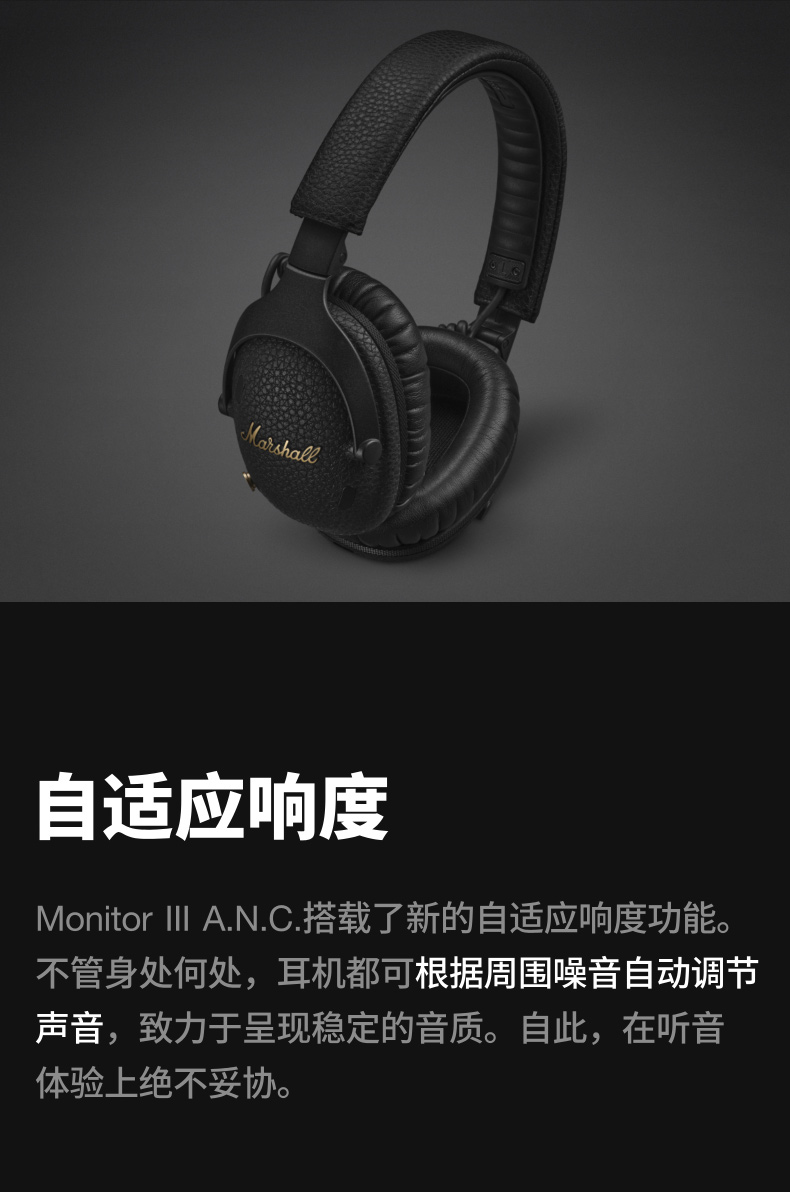 马歇尔/MARSHALL MONITOR III ANC马歇尔无线蓝牙耳麦头戴式耳机降噪电脑