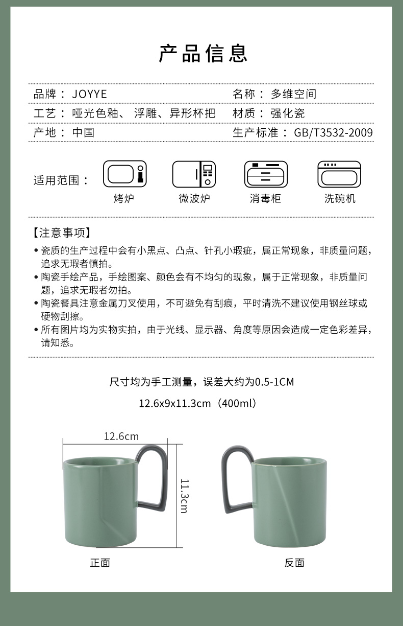 JOYYE卓艺多维空间陶瓷杯TMC0120049水杯男办公室女简约咖啡杯马克笔