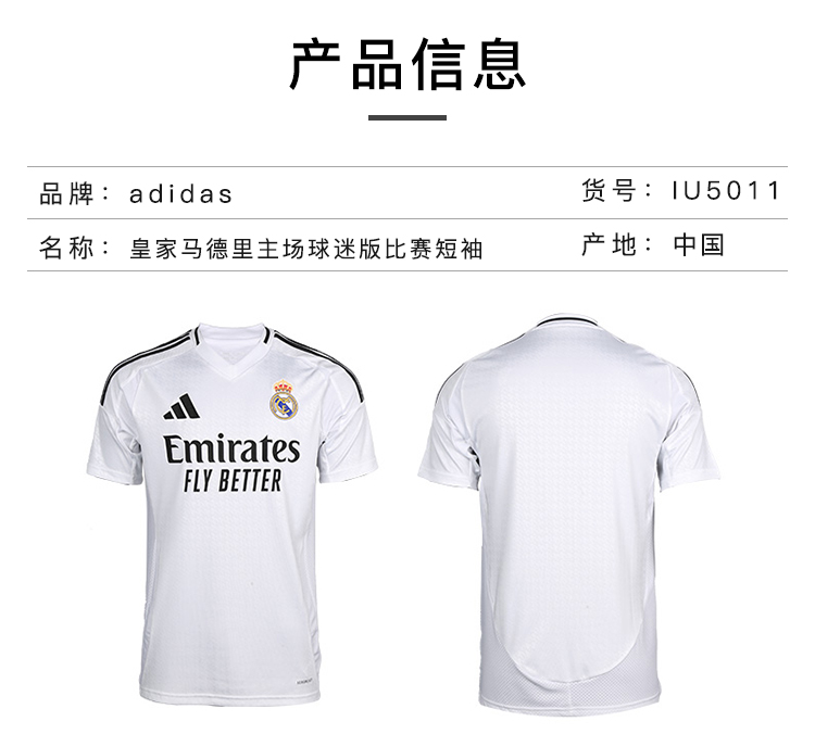 小李子ADIDAS阿迪达斯24/25赛季皇家马德里主场球迷版球衣成人男IU5011