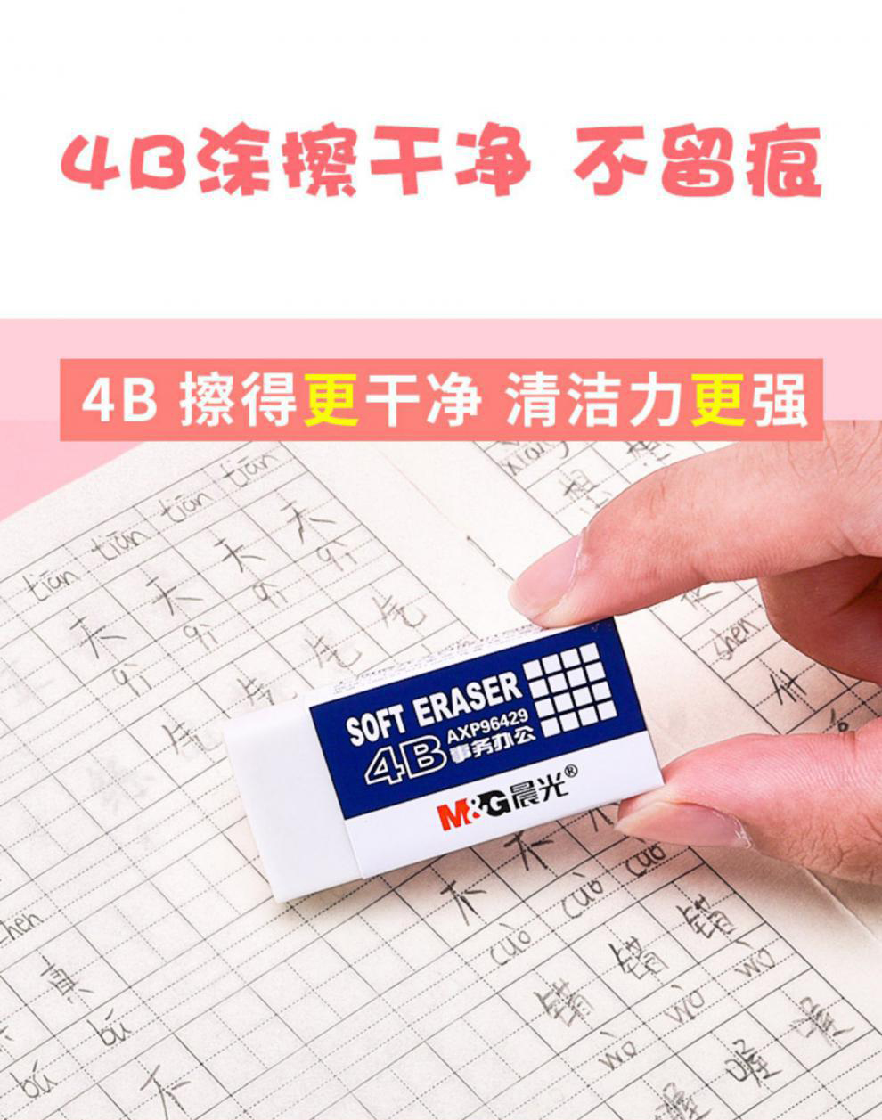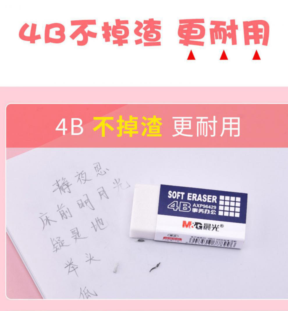 晨光橡皮/AXP96429小学生用4B不留痕少屑考试专用美术素描铅笔擦