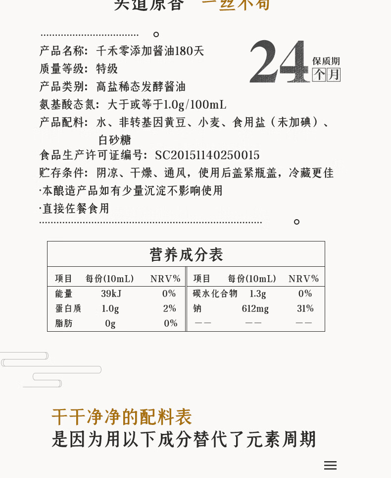 千禾 零添加生抽180天 1.8L