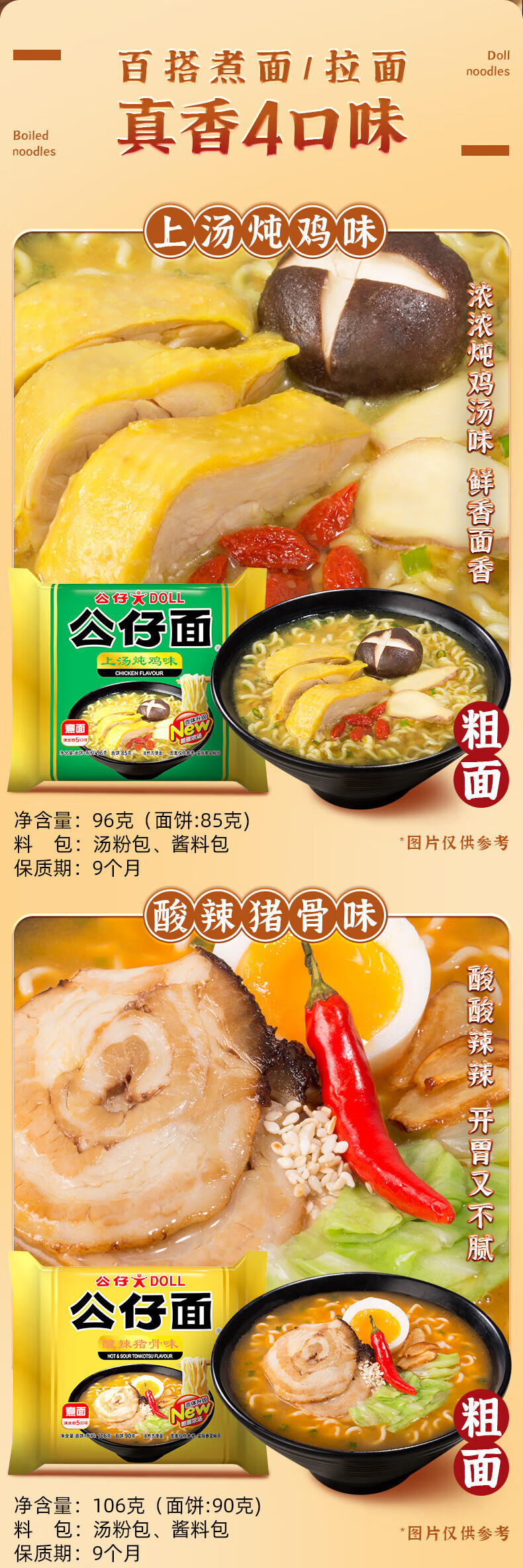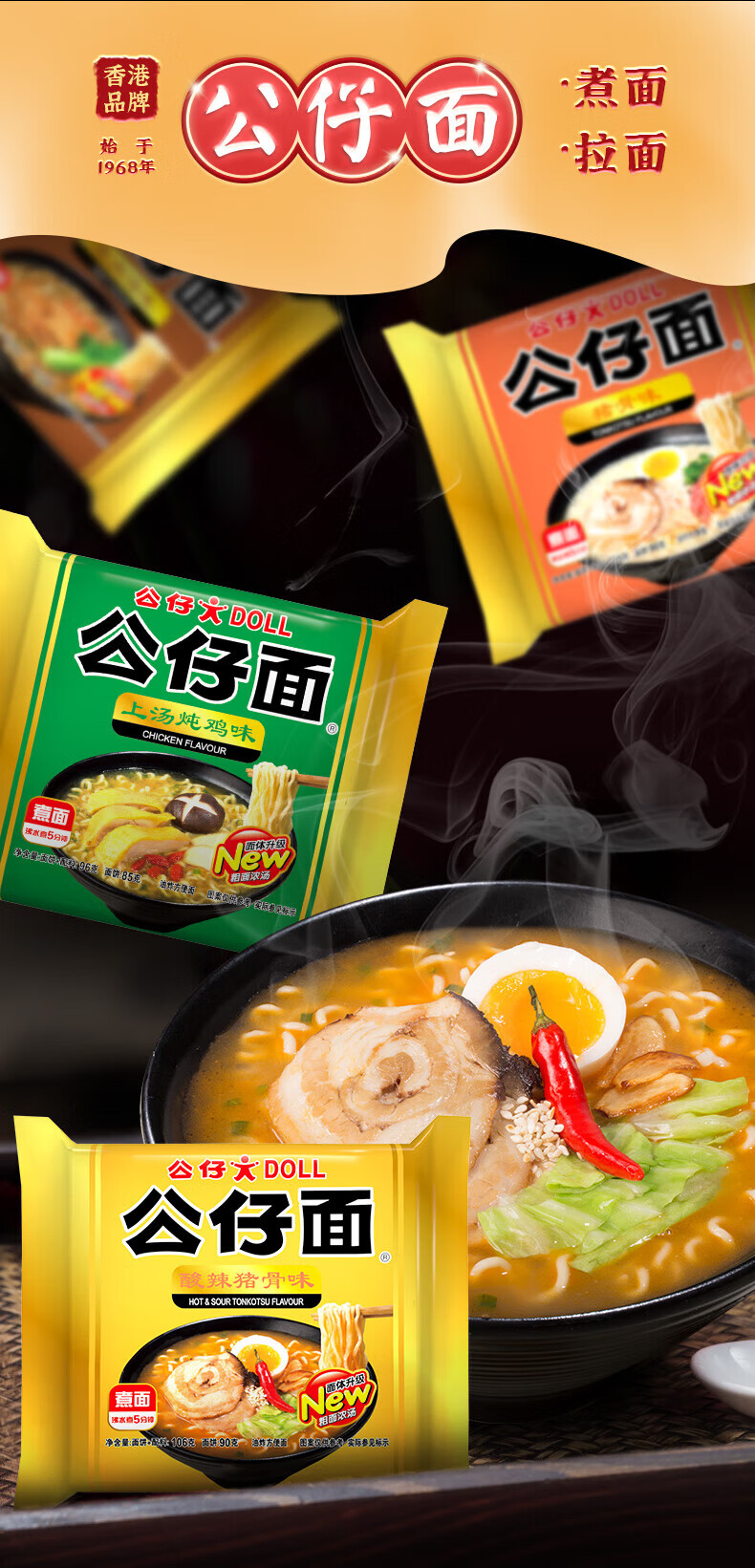 公仔面 牛肉汤味(4连包) 388g/盒
