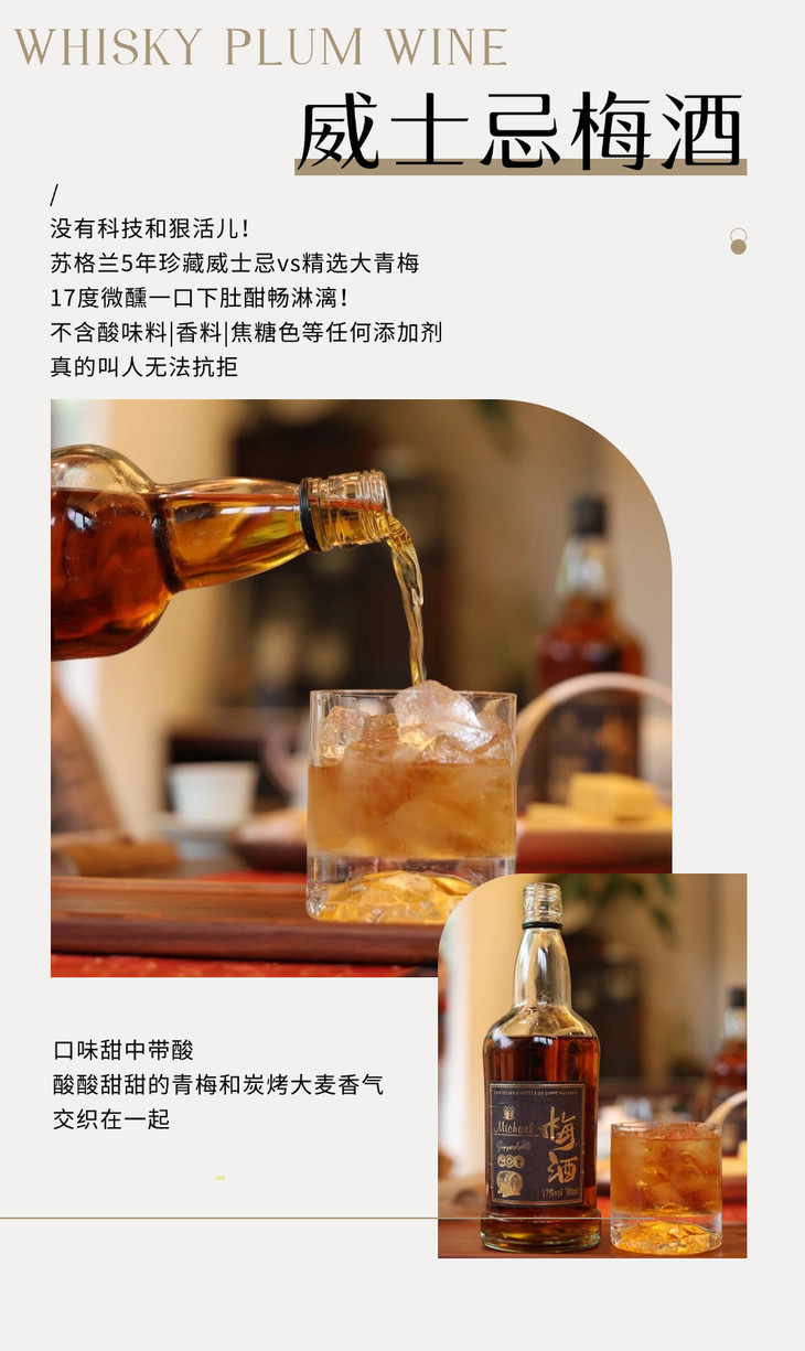 麦克尔威士忌梅酒的基酒正是对照“山qi”威士忌为蓝本调制的!这也正是卡特尔酒庄这款青梅酒的灵魂所在!