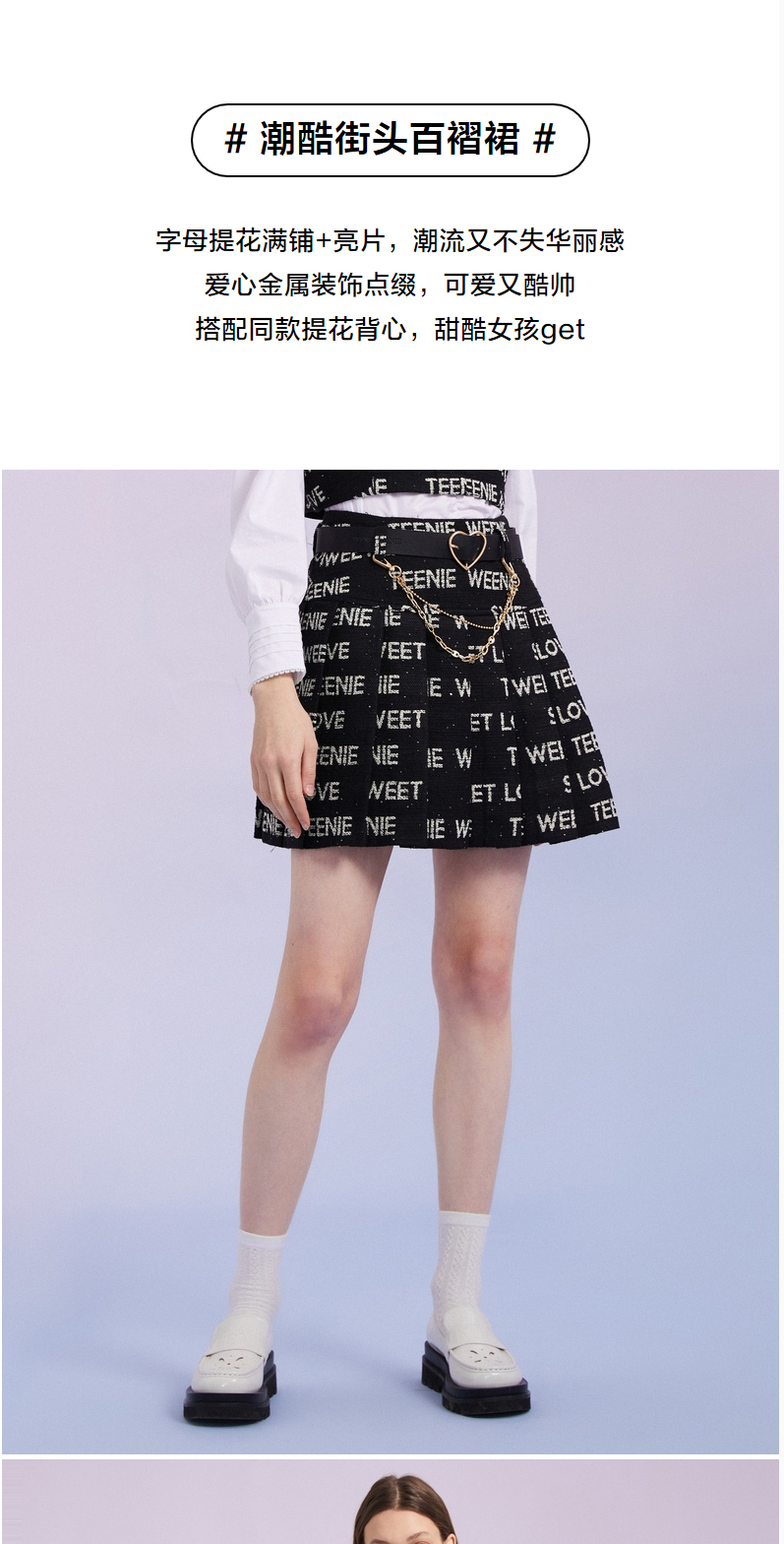 TeenieWeenie小熊百褶半身裙A字裙高腰显瘦裙甜酷少女感女春夏款TTWH221201T