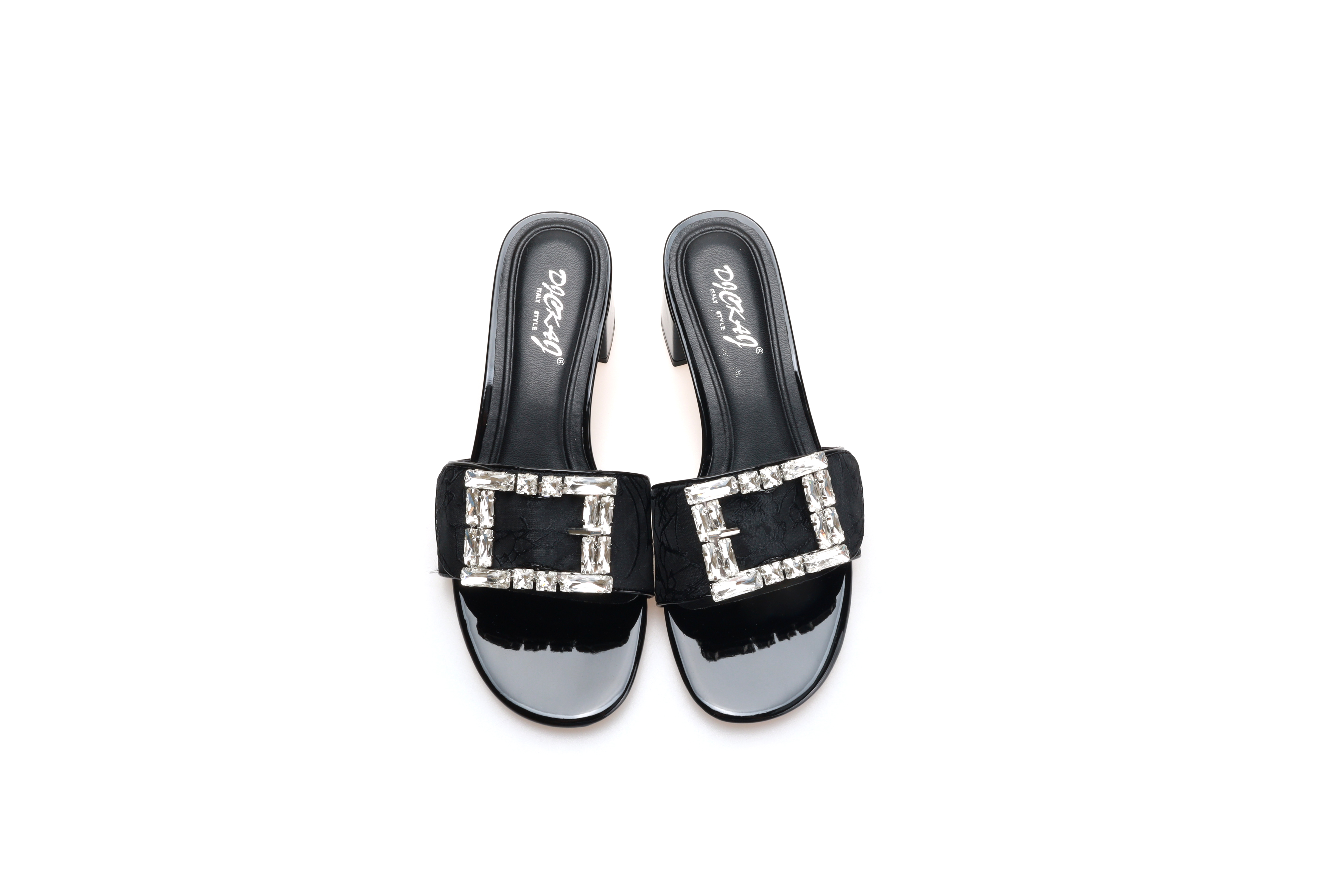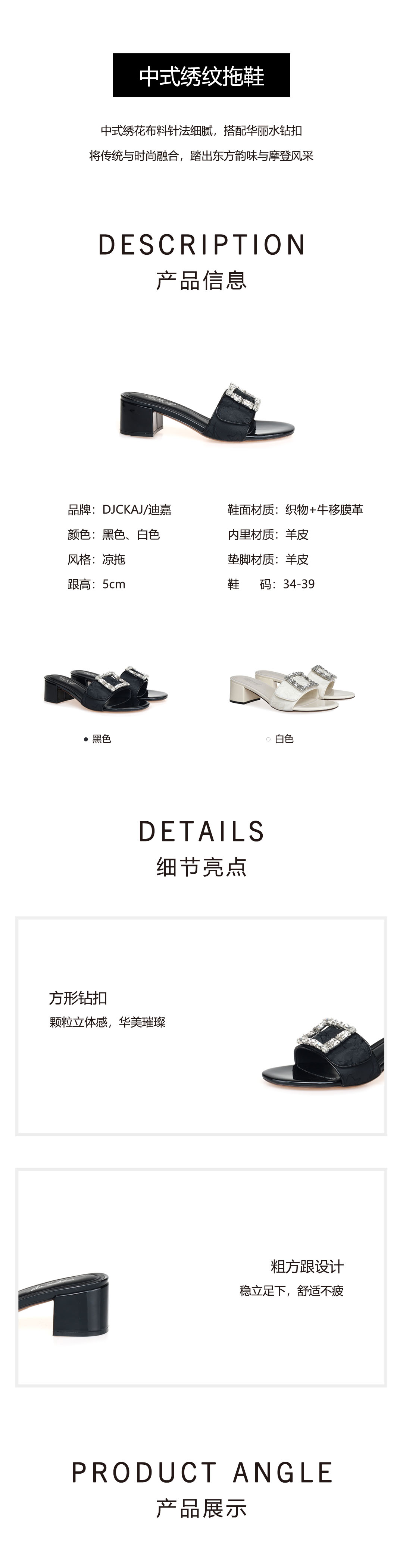 豪麟名鞋奥莱迪嘉女鞋凉拖织物+牛移膜革DJYYA51WL022黑色 原价1660元