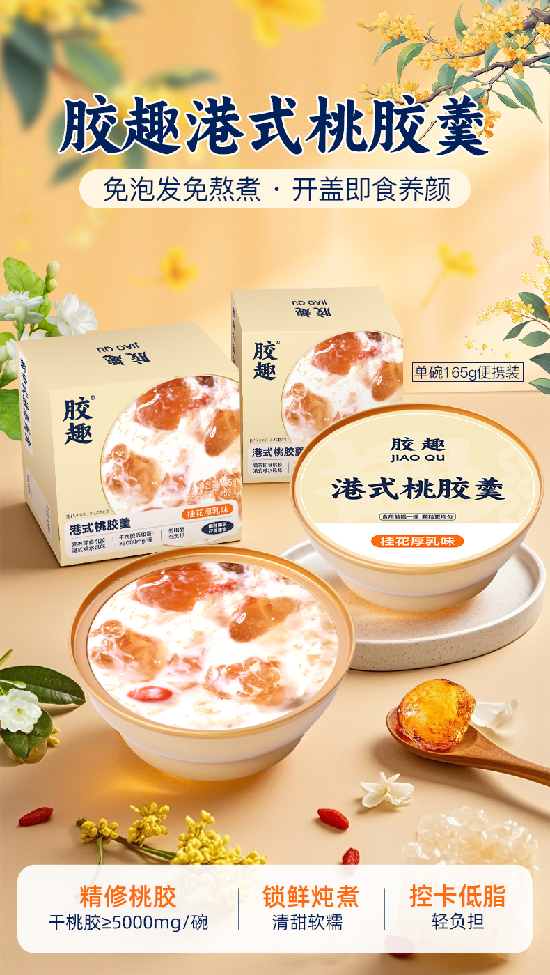 胶趣港式桃胶羹 桂花厚乳味 165g*6碗【放心甄选】【佳人严选】