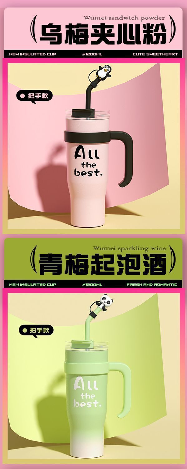 【36.8带走1200ml的冰霸杯】【冰霸杯❗️足足1200ml😱】 巨无霸304不锈钢保温杯户外便携保冷水杯带手柄车载冰霸杯