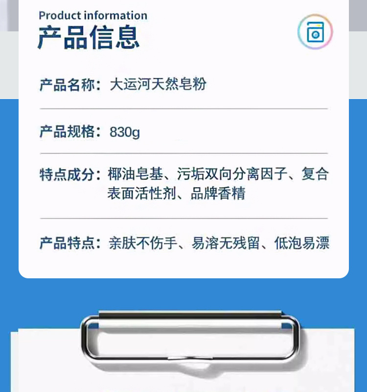 「低泡易漂!天然皂粉」大运河洗衣粉 皂粉去污家用清洁工具衣物家用830g